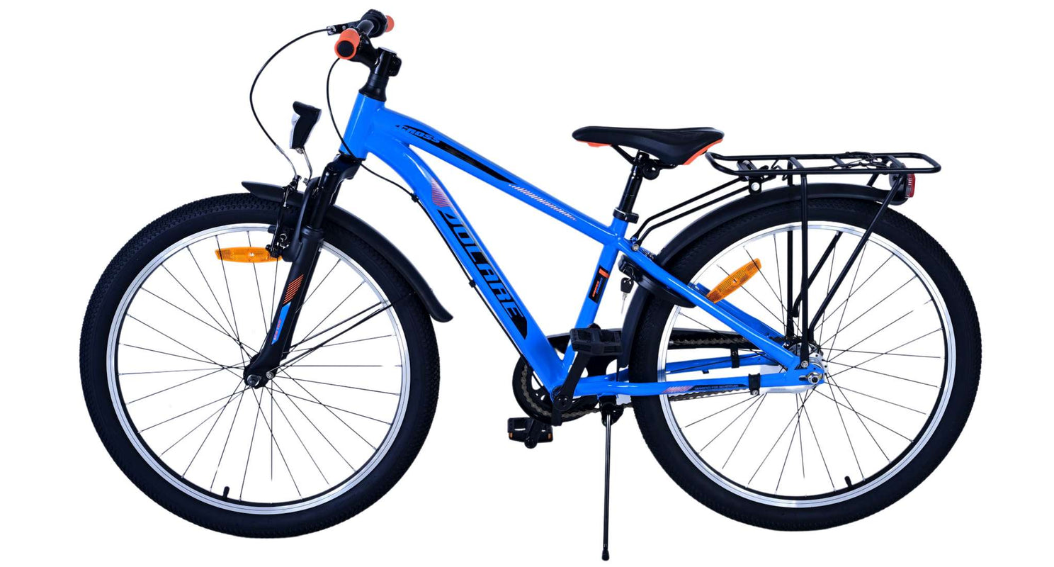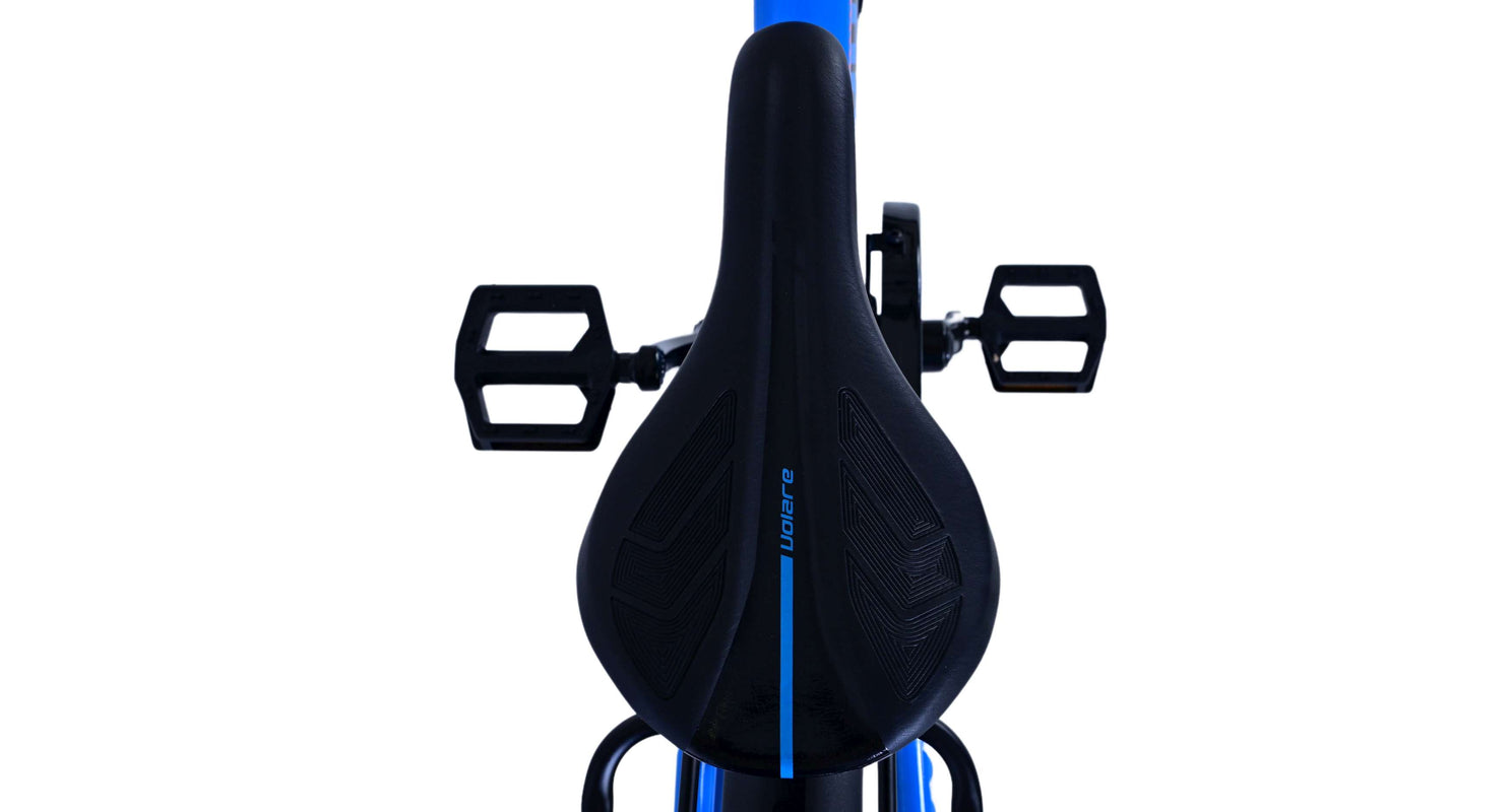 Veiligheid staat voorop! Daarom heeft deze gave fiets een handrem en terugtraprem, 3 versnellingen, reflectoren in de wielen en verlichting op batterij voor en achter. Ook aan het comfort is gedacht. De mooie donkerblauwe Volare fiets heeft een handige achterdrager om moeiteloos al je spullen mee te nemen, een comfortabel zacht zadel, een standaard zodat je fiets altijd netjes blijft staan en een stevig slot. Om zo lang mogelijk van de fiets te kunnen genieten heeft deze een extra lange zadelpen waardoor de fiets nóg langer met het kind meegroeit. Let op, het stuur is niet in hoogte verstelbaar!