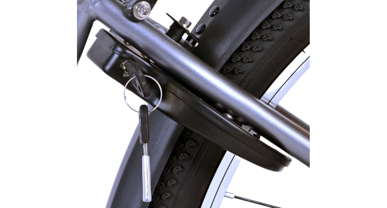 Veiligheid staat voorop! Daarom heeft deze gave fiets een handrem en terugtraprem, reflectoren in de wielen en verlichting op batterij voor en achter. Ook aan het comfort is gedacht. De mooie donker grijze Volare fiets heeft een handige achterdrager om moeiteloos al je spullen mee te nemen, een comfortabel zacht zadel, een standaard zodat je fiets altijd netjes blijft staan en een stevig slot. Om zo lang mogelijk van de fiets te kunnen genieten heeft deze een extra lange zadelpen waardoor de fiets nóg langer met het kind meegroeit. Let op, het stuur is niet in hoogte verstelbaar!