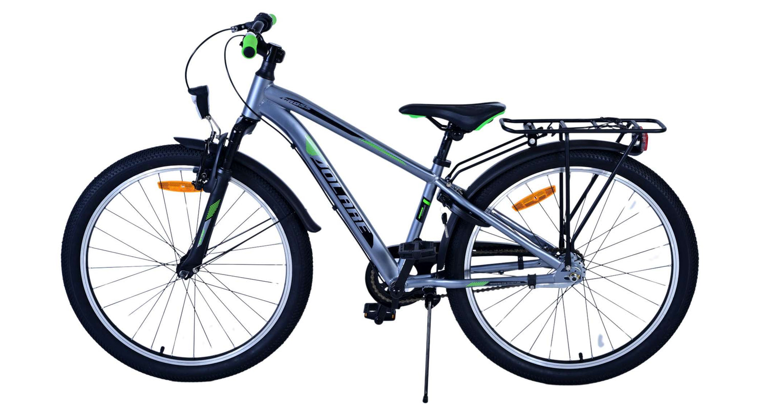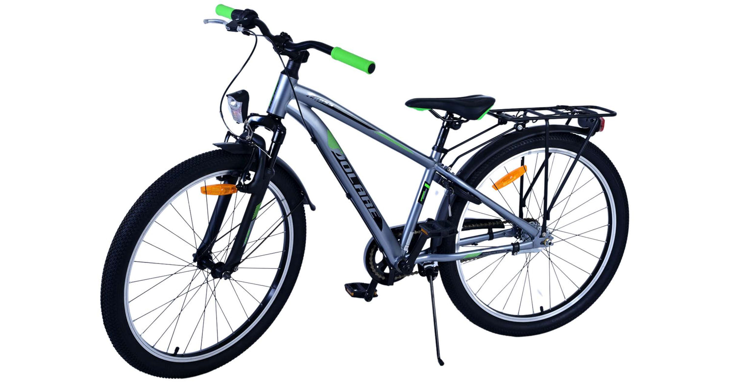 Veiligheid staat voorop! Daarom heeft deze gave fiets een handrem en terugtraprem, 3 versnellingen, reflectoren in de wielen en verlichting op batterij voor en achter. Ook aan het comfort is gedacht. De mooie donkergrijze Volare fiets heeft een handige achterdrager om moeiteloos al je spullen mee te nemen, een comfortabel zacht zadel, een standaard zodat je fiets altijd netjes blijft staan en een stevig slot. Om zo lang mogelijk van de fiets te kunnen genieten heeft deze een extra lange zadelpen waardoor de fiets nóg langer met het kind meegroeit. Let op, het stuur is niet in hoogte verstelbaar!