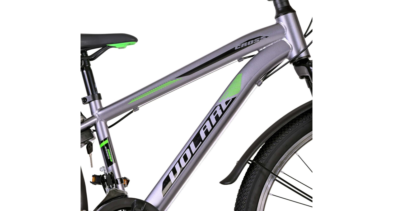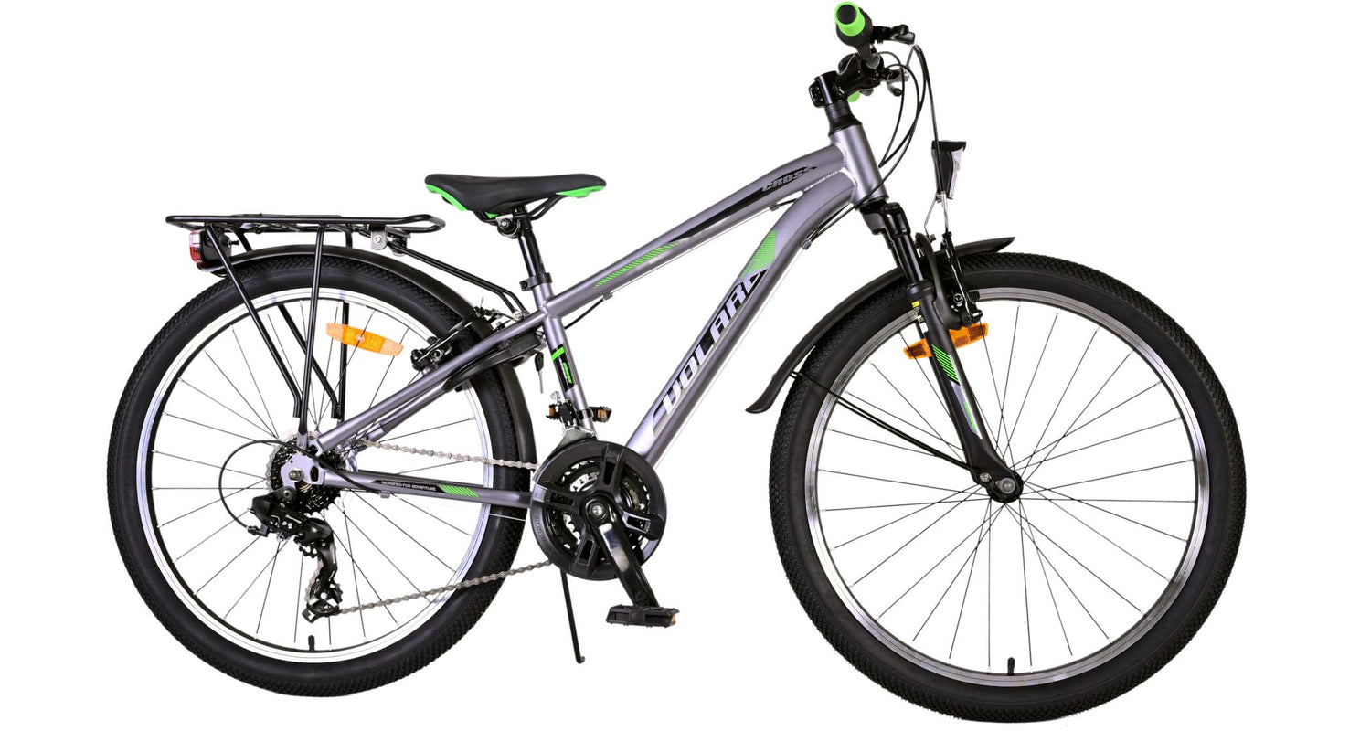 Veiligheid staat voorop! Daarom heeft deze gave fiets geen terugtraprem maar twee handremmen, 21 versnellingen, reflectoren in de wielen en verlichting op batterij voor en achter. Ook aan het comfort is gedacht. De mooie donkergrijze Volare fiets heeft een handige achterdrager om moeiteloos al je spullen mee te nemen, een comfortabel zacht zadel, een standaard zodat je fiets altijd netjes blijft staan en een stevig slot. Om zo lang mogelijk van de fiets te kunnen genieten heeft deze een extra lange zadelpen waardoor de fiets nóg langer met het kind meegroeit. Let op, het stuur is niet in hoogte verstelbaar!
