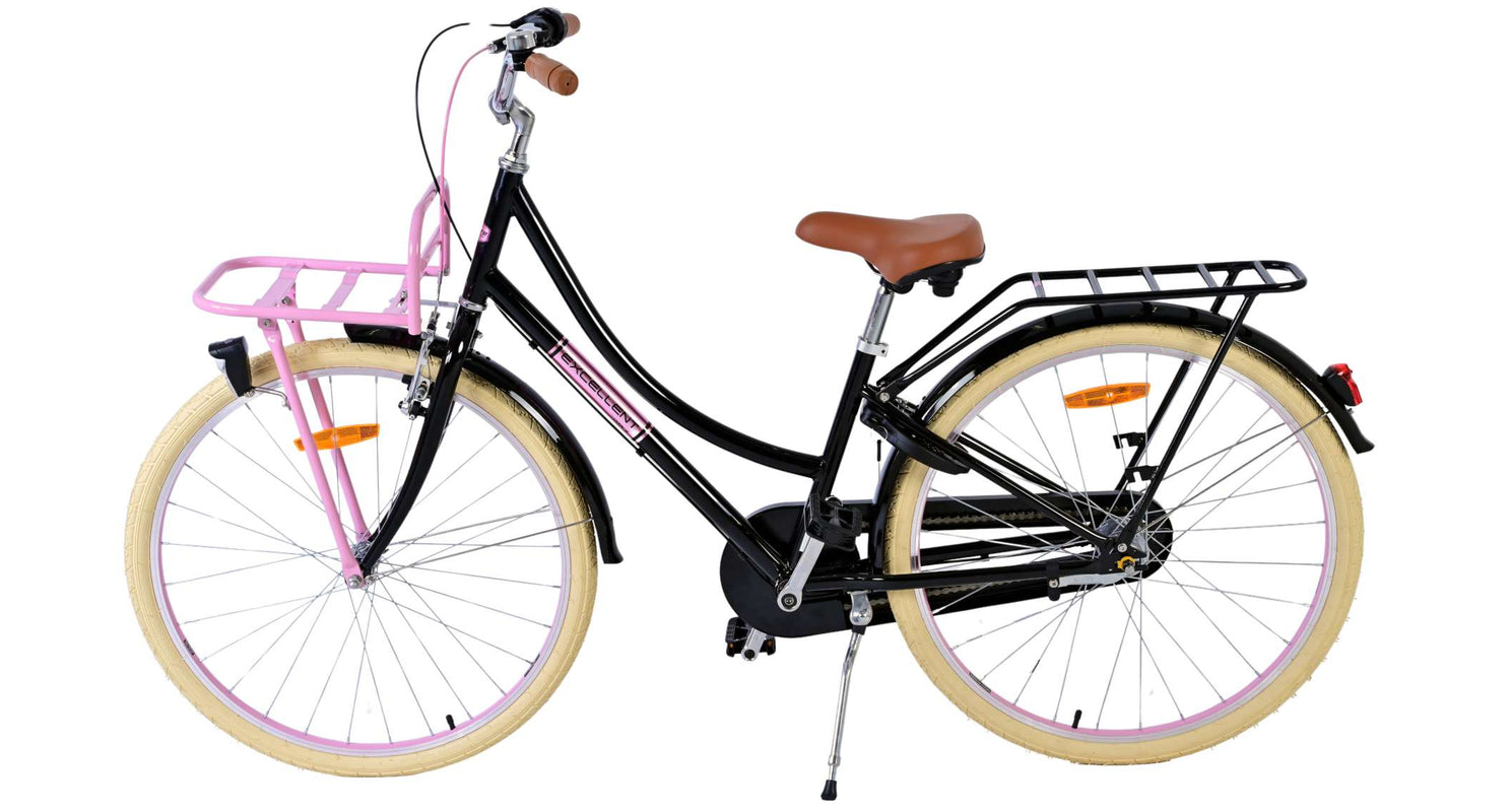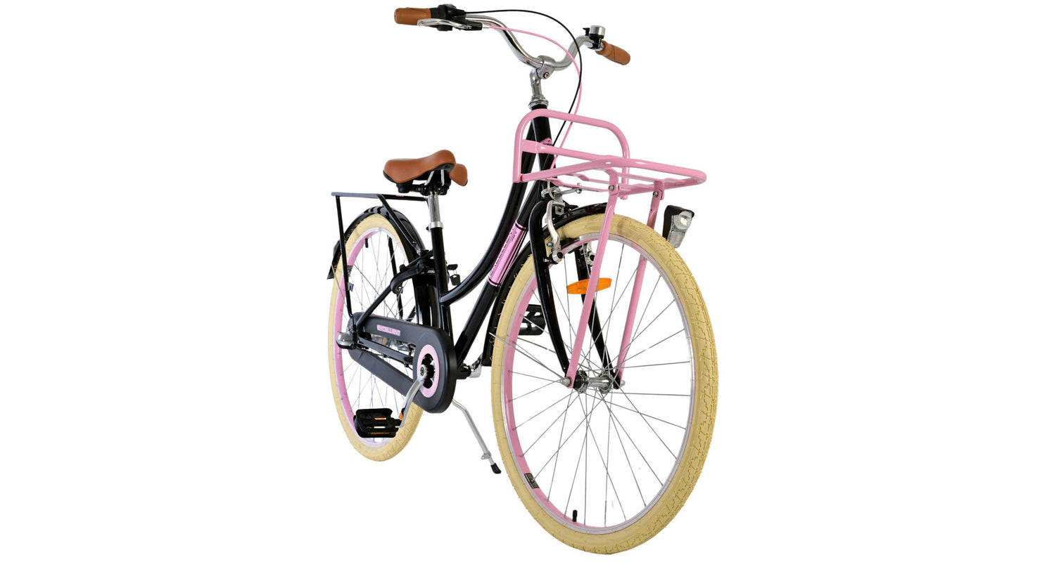 Veiligheid staat voorop! Daarom heeft deze gave fiets een handrem en terugtraprem, 3 versnellingen en een gesloten kettingkast. Daarnaast heeft de fiets reflectoren voor en achter en een leuke bel. Ook aan het comfort is gedacht. De mooie zwarte Volare fiets heeft een handige voordrager, een achterdrager geïntegreerd in het frame en een luxe zacht zadel. Om zo lang mogelijk van de fiets te kunnen genieten zijn het zadel en stuur in hoogte verstelbaar.