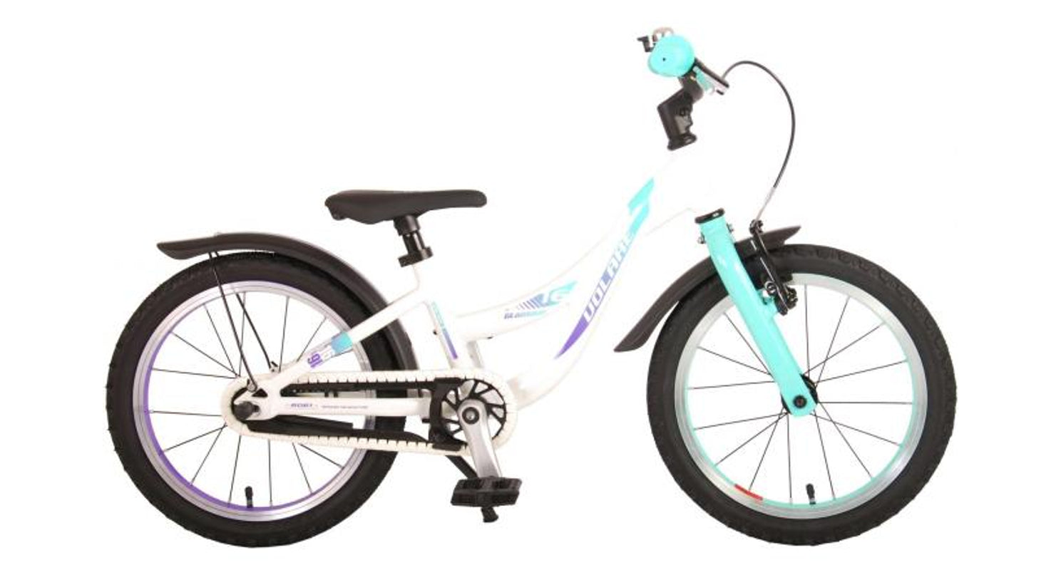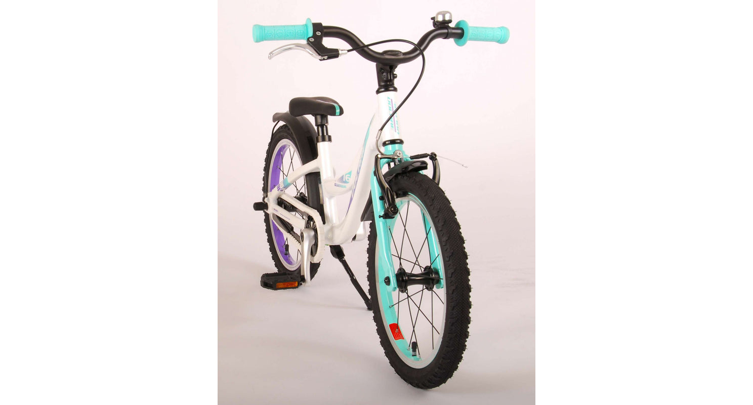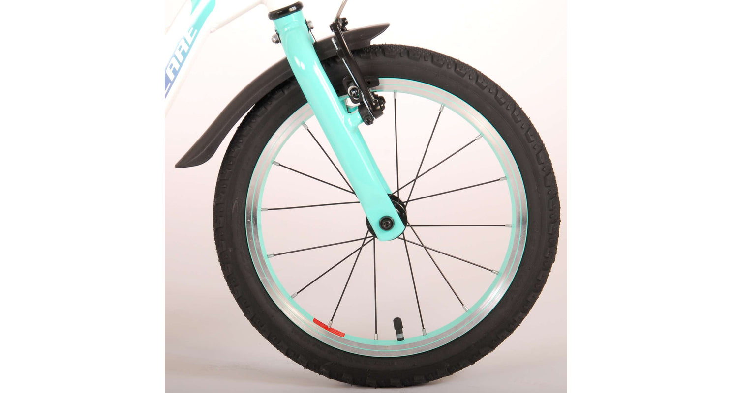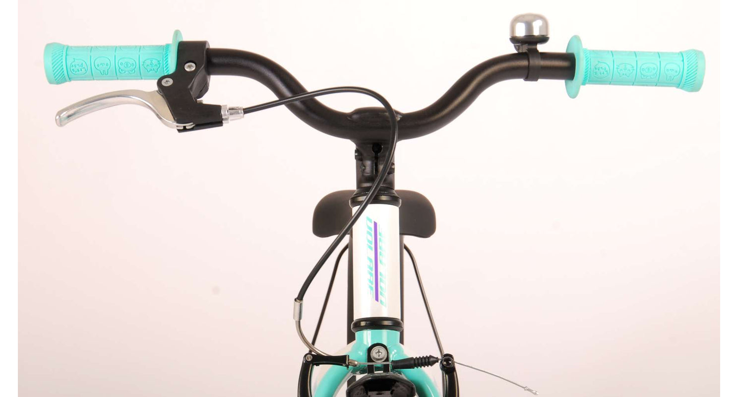 Veiligheid staat voorop! Daarom heeft deze gave fiets een handrem en terugtraprem en een chainlooper. Daarnaast heeft de fiets reflectoren in de trappers en een leuke bel. Ook aan het comfort is gedacht. De mooie witte Volare fiets met mintgroene accenten heeft een extra licht aluminium frame (slechts 5,9 kilo!), een comfortabel zacht zadel, handvaten van kraton, en een stevig standaard zodat je fiets altijd netjes blijft staan. Om zo lang mogelijk van de fiets te kunnen genieten heeft de fiets een extra lange zadelpen waardoor de fiets nóg langer met het kind meegroeit (het stuur is niet in hoogte verstelbaar). Kortom: een topkwaliteit fiets waar uw kind nog jaren van kan genieten!