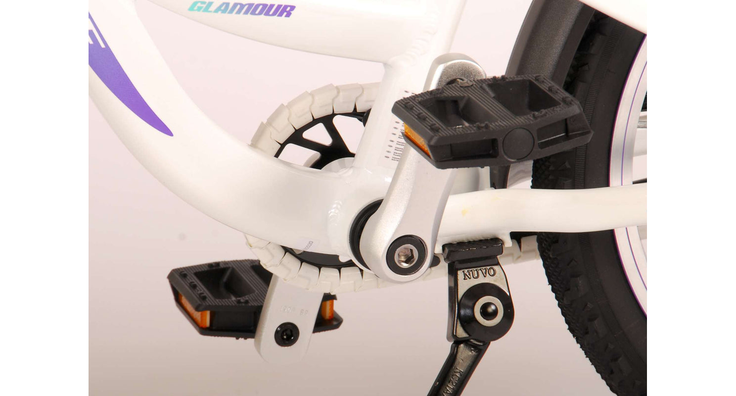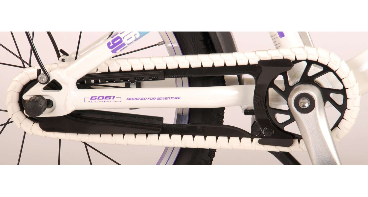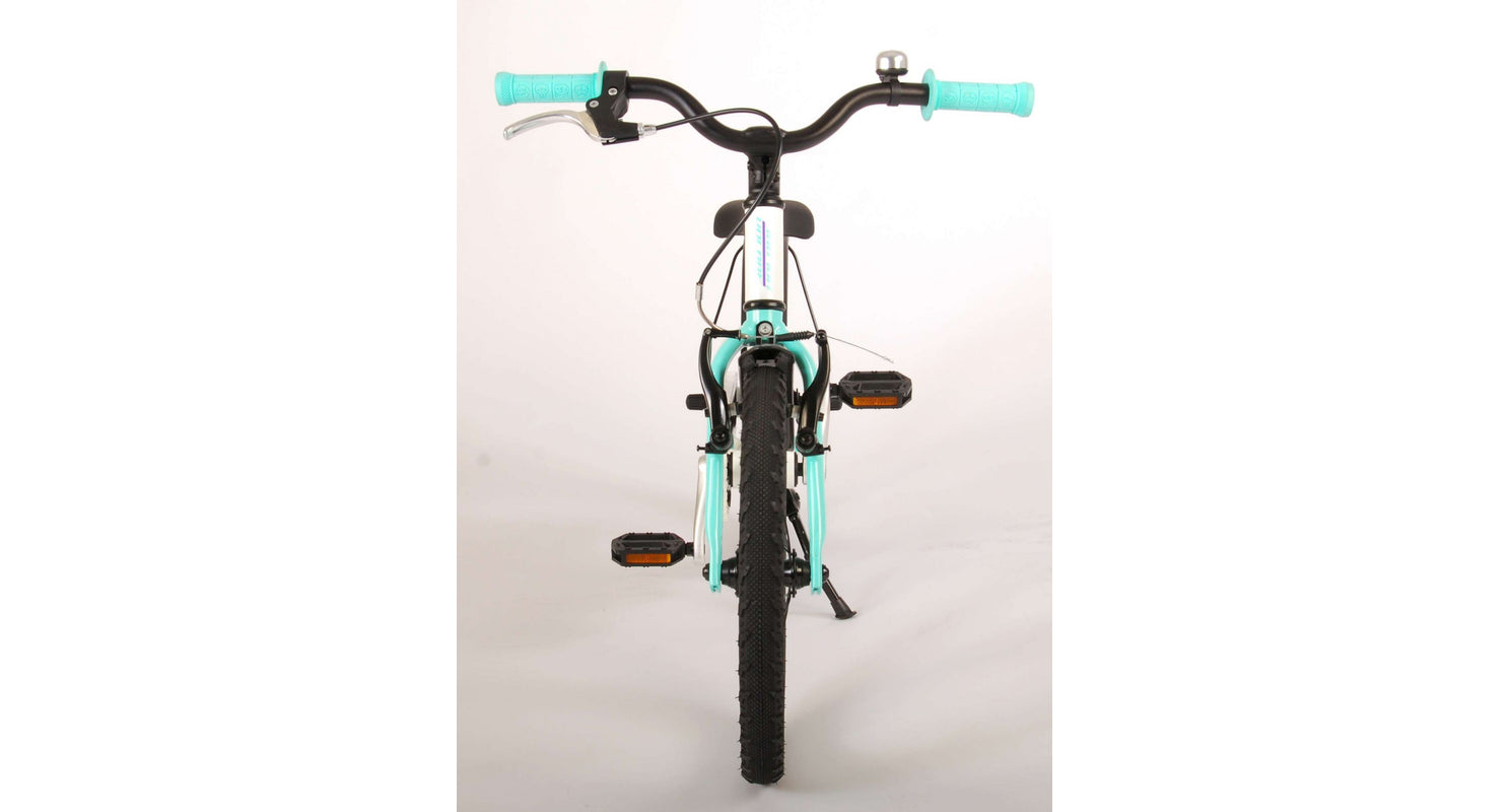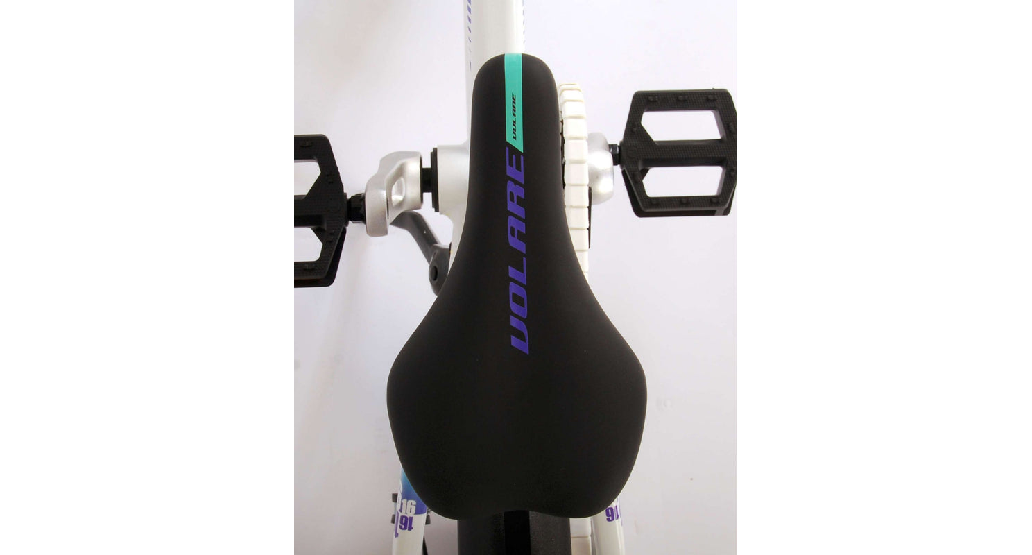 Veiligheid staat voorop! Daarom heeft deze gave fiets een handrem en terugtraprem en een chainlooper. Daarnaast heeft de fiets reflectoren in de trappers en een leuke bel. Ook aan het comfort is gedacht. De mooie witte Volare fiets met mintgroene accenten heeft een extra licht aluminium frame (slechts 5,9 kilo!), een comfortabel zacht zadel, handvaten van kraton, en een stevig standaard zodat je fiets altijd netjes blijft staan. Om zo lang mogelijk van de fiets te kunnen genieten heeft de fiets een extra lange zadelpen waardoor de fiets nóg langer met het kind meegroeit (het stuur is niet in hoogte verstelbaar). Kortom: een topkwaliteit fiets waar uw kind nog jaren van kan genieten!
