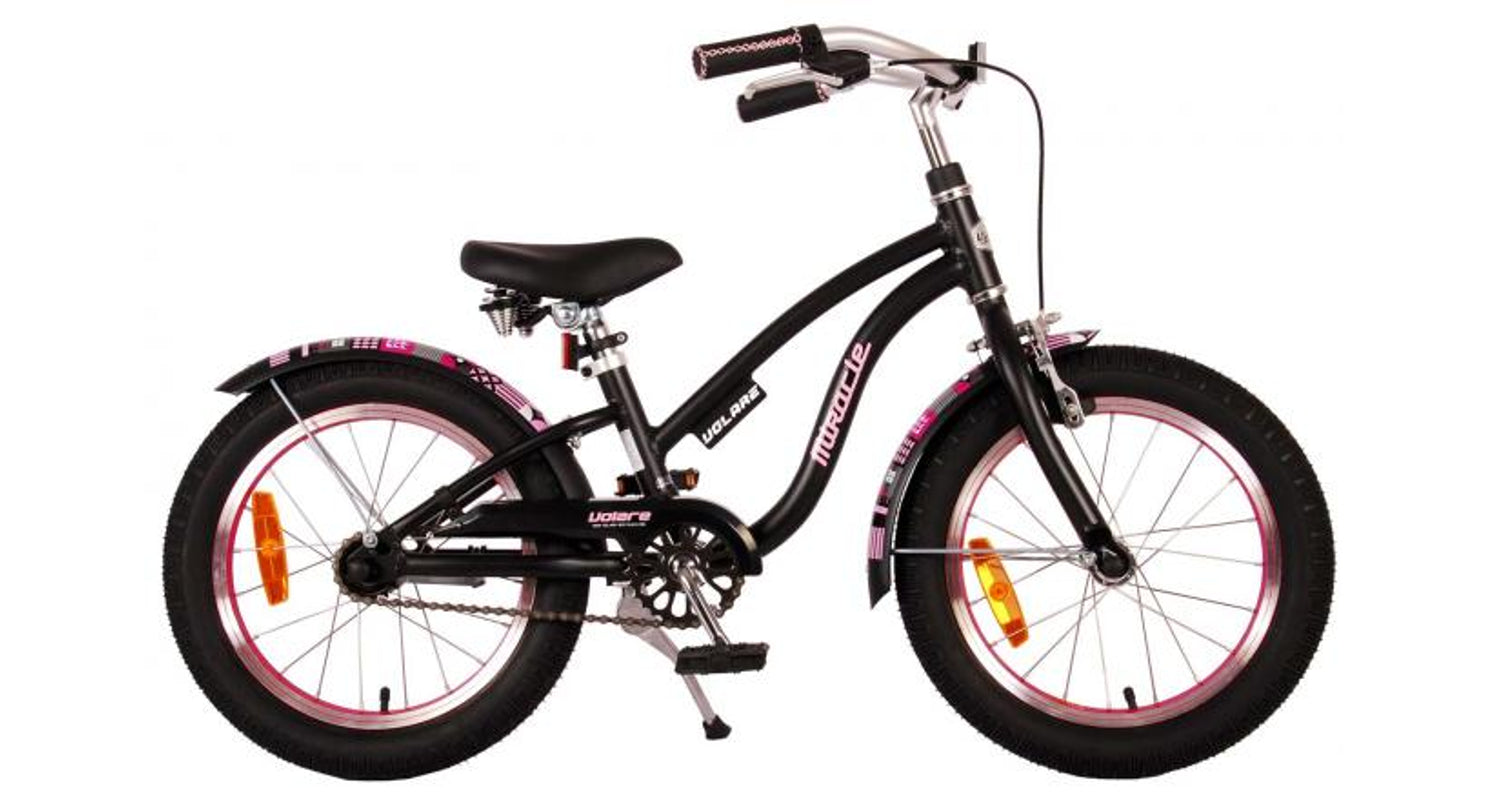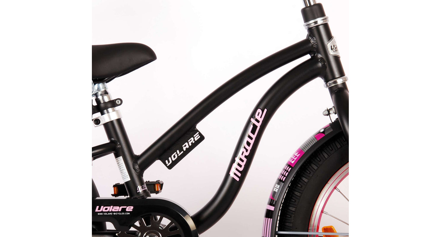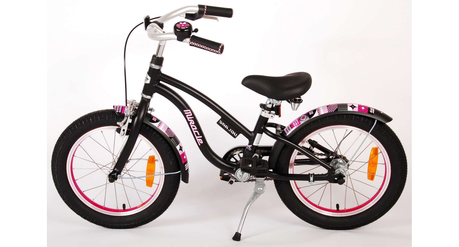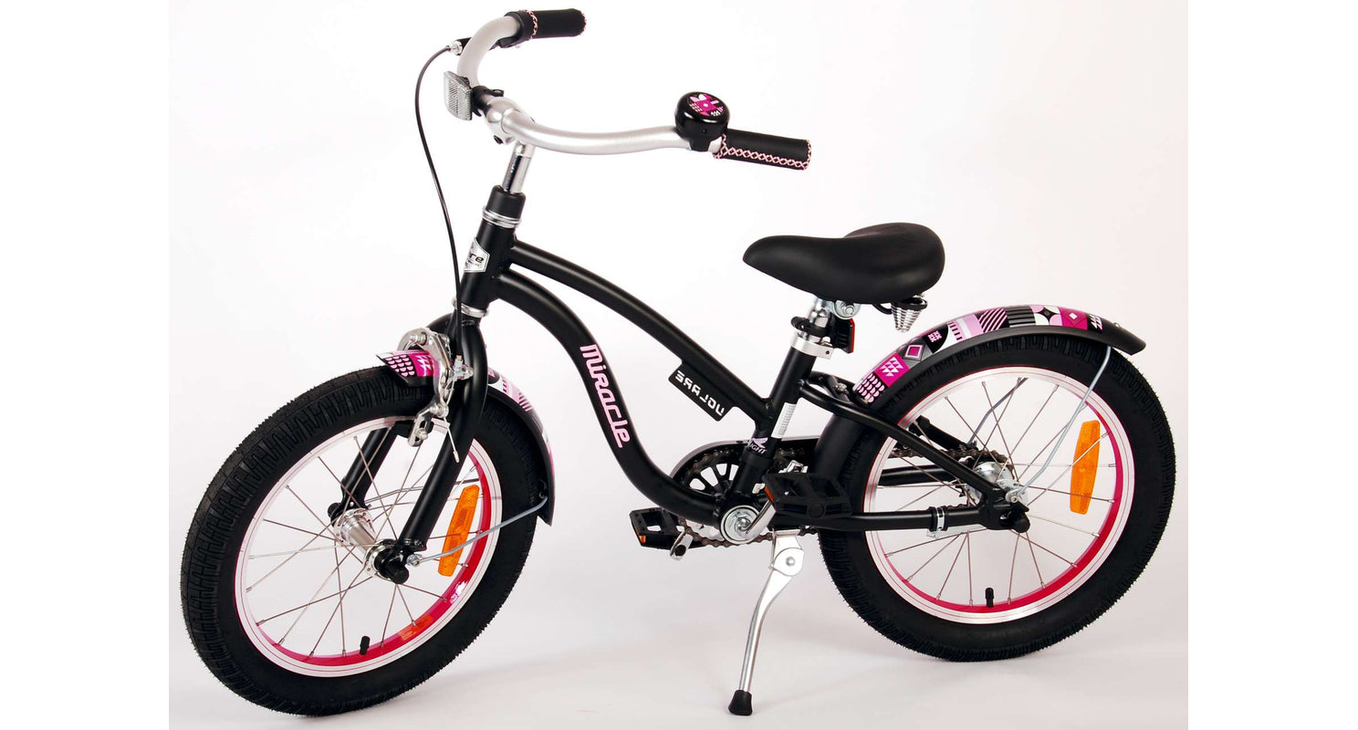 Veiligheid staat voorop! Daarom heeft deze gave fiets een terugtraprem en een handrem en reflectoren in de pedalen. Ook aan het comfort is gedacht. De mooie mat zwarte Miracle fiets heeft een extra licht aluminium frame, een standaard zodat je fiets netjes blijft staan en een comfortabel zacht zadel. Om zo lang mogelijk van de fiets te kunnen genieten zijn het zadel en stuur in hoogte verstelbaar.