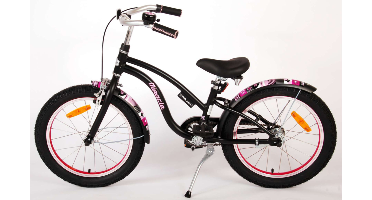 Veiligheid staat voorop! Daarom heeft deze gave fiets een handrem en terugtraprem. Daarnaast heeft de fiets reflectoren in de wielen, reflectoren voor en achter op de fiets. Ook aan het comfort is gedacht. De mooie mat zwarte Miracle fiets heeft een standaard zodat je fiets netjes blijft staan, een comfortabel zacht zadel en een extra licht aluminium frame. Om zo lang mogelijk van de fiets te kunnen genieten zijn het zadel en stuur in hoogte verstelbaar.