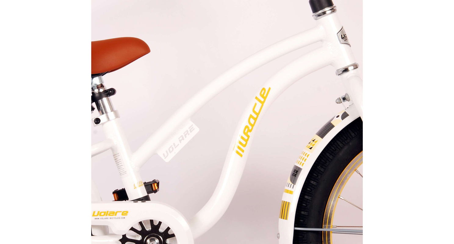 Veiligheid staat voorop! Daarom heeft deze gave fiets een handrem en terugtraprem. Daarnaast heeft de fiets reflectoren in de wielen, reflectoren voor en achter op de fiets. Ook aan het comfort is gedacht. De mooie witte Miracle fiets heeft een standaard zodat je fiets netjes blijft staan, een comfortabel zacht zadel en een extra licht aluminium frame. Om zo lang mogelijk van de fiets te kunnen genieten zijn het zadel en stuur in hoogte verstelbaar.