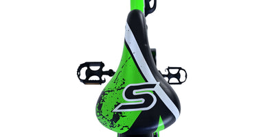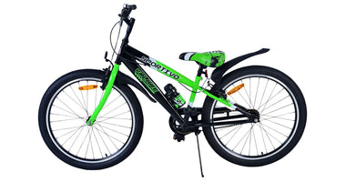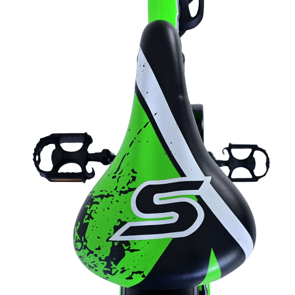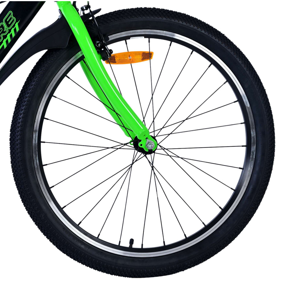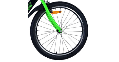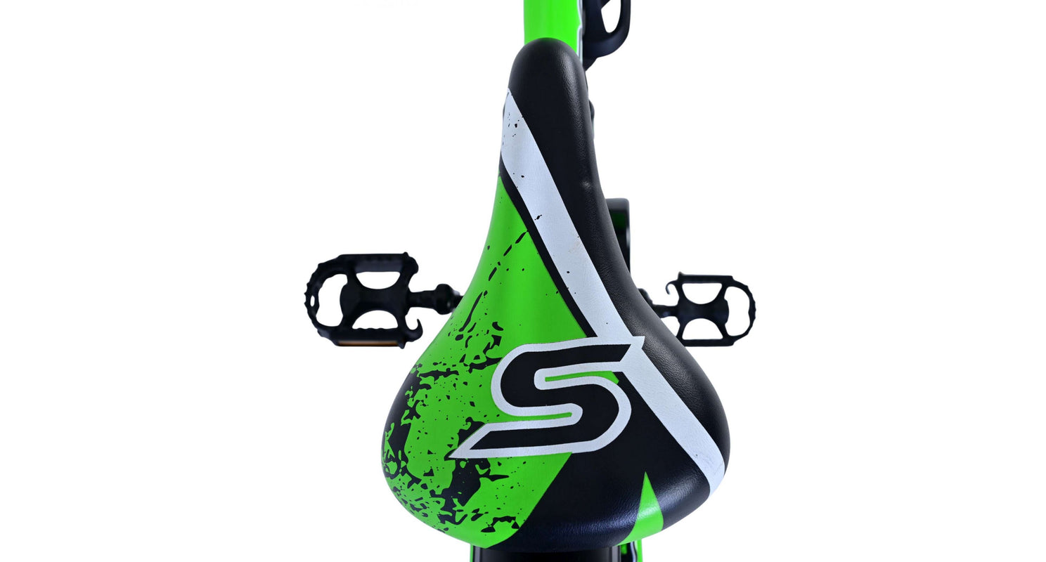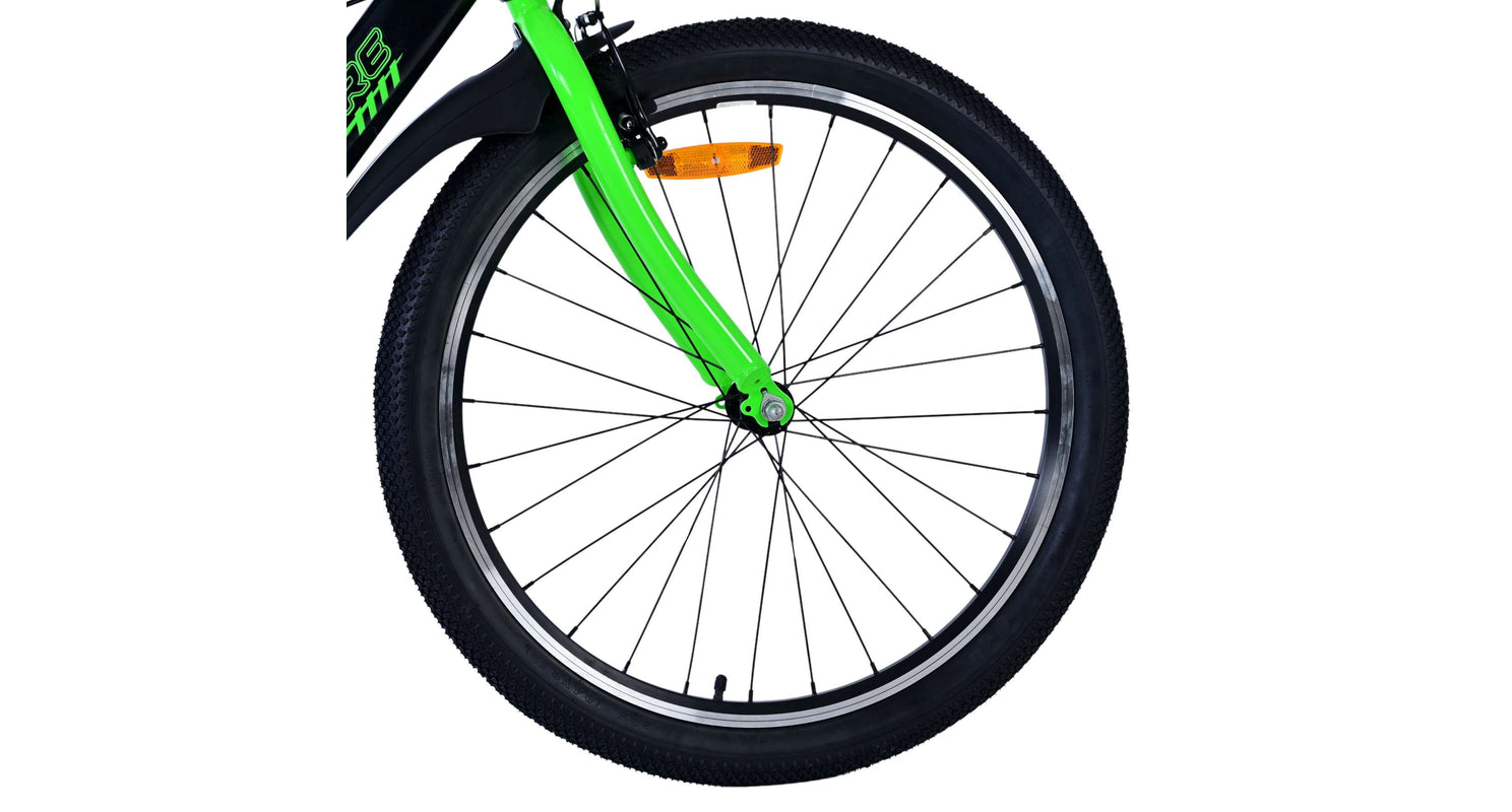Veiligheid staat voorop! Daarom heeft deze gave fiets GEEN terugtraprem en 2 handremmen. Daarnaast heeft de fiets een leuke bel en reflectoren in de wielen. Ook aan het comfort is gedacht. De mooie zwarte Volare fiets met groene accenten heeft een standaard zodat hij netjes blijft staan. Om zo lang mogelijk van de fiets te kunnen genieten heeft deze een extra lange zadelpen waardoor de fiets nóg langer met het kind meegroeit en ook het stuur is in hoogte verstelbaar.