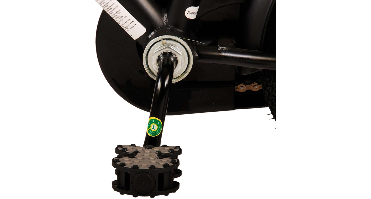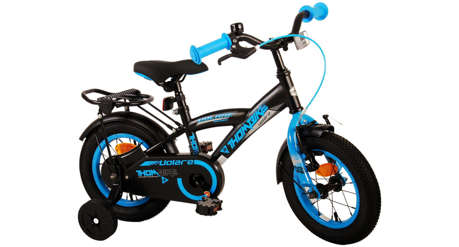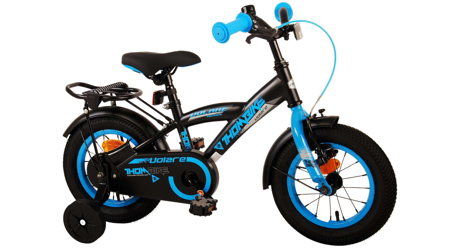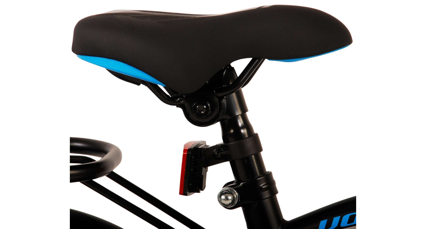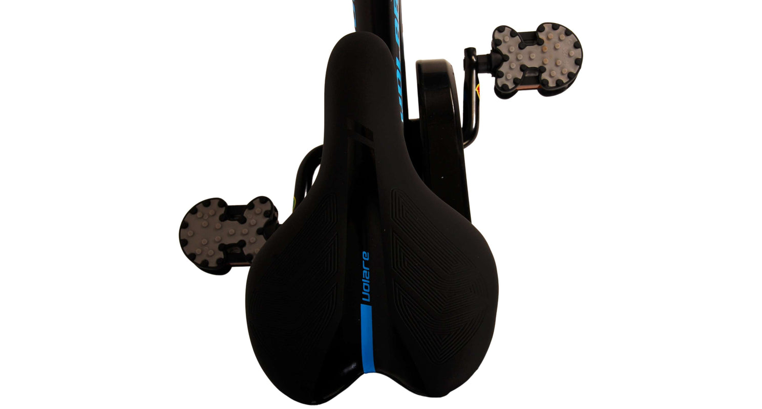 Veiligheid staat voorop! Daarom heeft deze gave fiets een handrem en terugtraprem, een gesloten kettingkast en afneembare zijwieltjes. Daarnaast heeft de fiets een leuke bel. Ook aan het comfort is gedacht. De mooie zwarte Volare fiets met blauwe accenten heeft een luxe zacht zadel, een handige achterdrager, en extra lange spatborden om al het vuil tegen te houden. Om zo lang mogelijk van de fiets te kunnen genieten zijn het zadel en stuur in hoogte verstelbaar. Wordt geleverd inclusief al het montagemateriaal dat nodig is om de fiets in elkaar te zetten!
