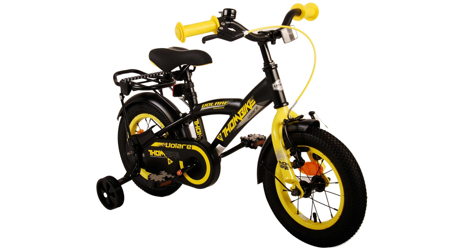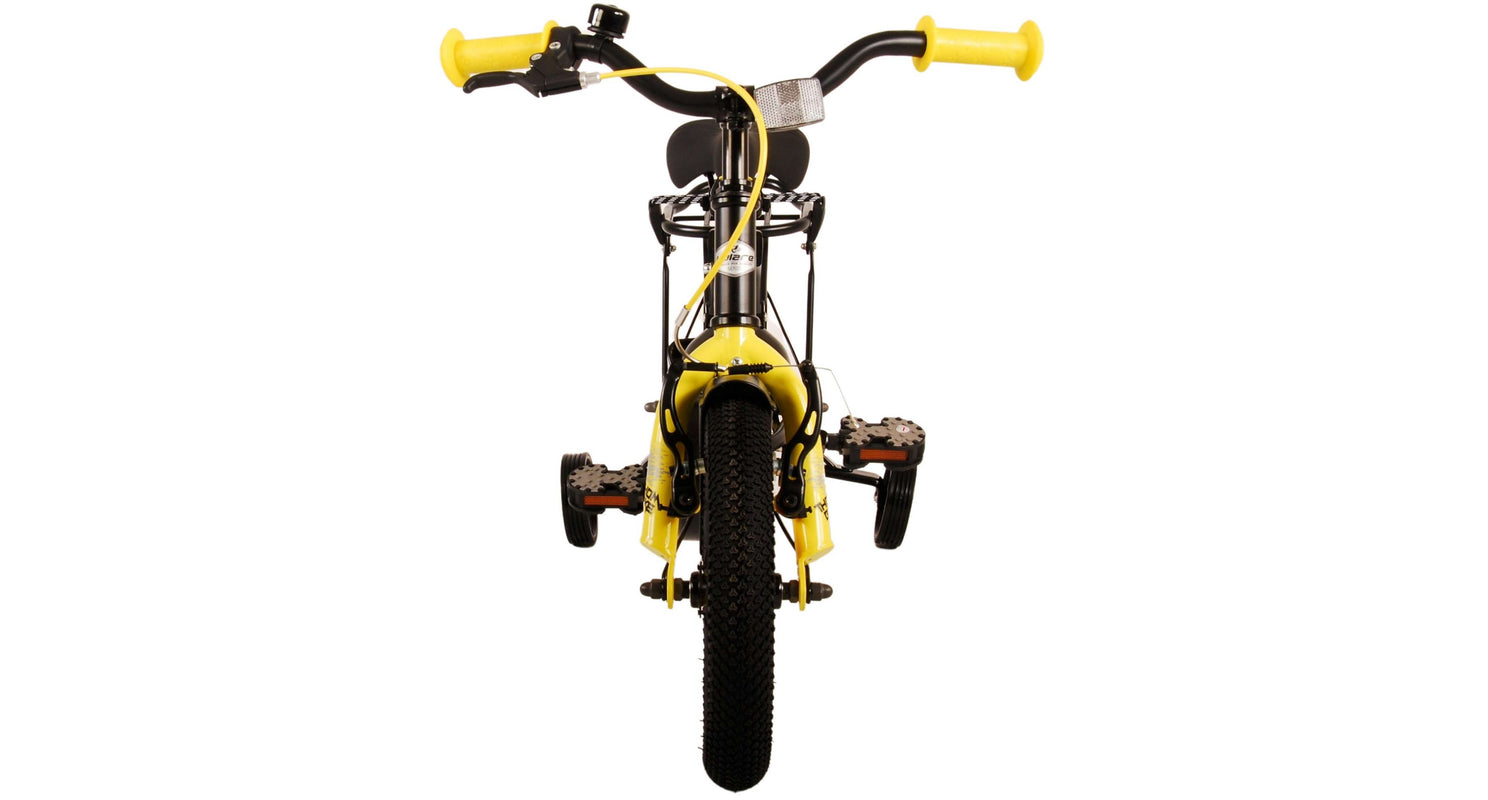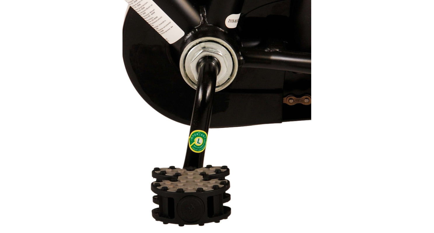 Veiligheid staat voorop! Daarom heeft deze gave fiets een handrem en terugtraprem, een gesloten kettingkast en afneembare zijwieltjes. Daarnaast heeft de fiets een leuke bel. Ook aan het comfort is gedacht. De mooie zwarte Volare fiets met gele accenten heeft een luxe zacht zadel, een handige achterdrager, en extra lange spatborden om al het vuil tegen te houden. Om zo lang mogelijk van de fiets te kunnen genieten zijn het zadel en stuur in hoogte verstelbaar. Wordt geleverd inclusief al het montagemateriaal dat nodig is om de fiets in elkaar te zetten!