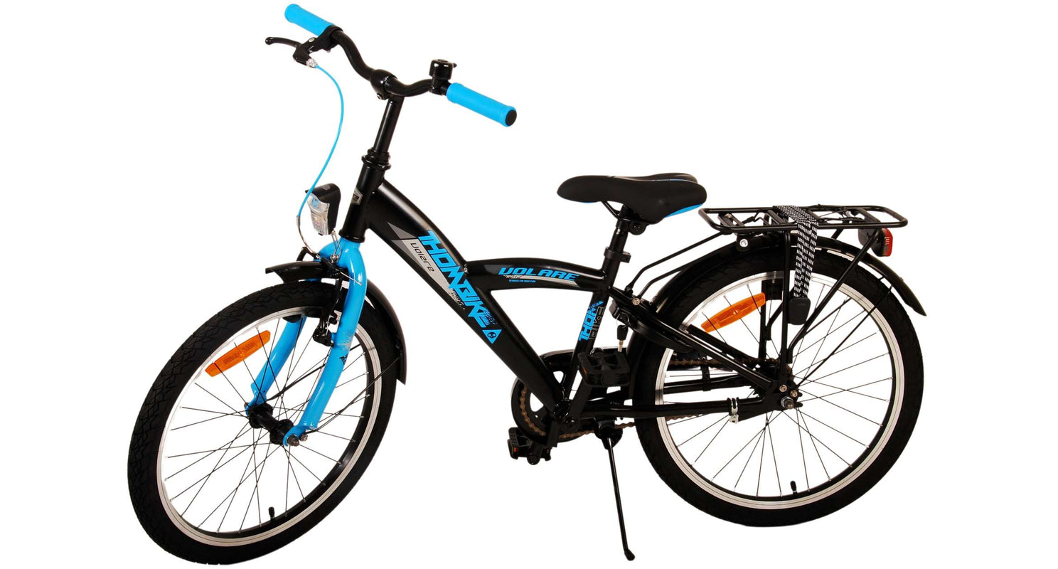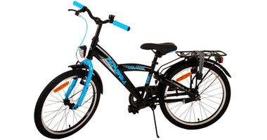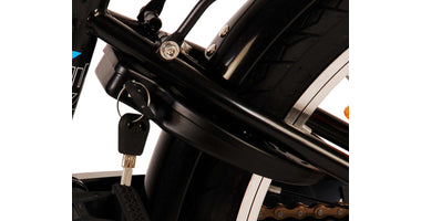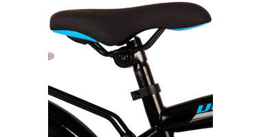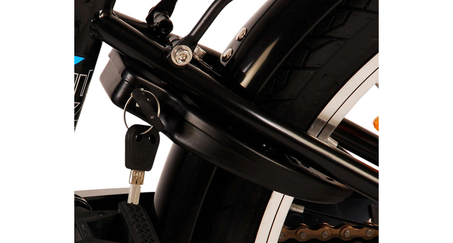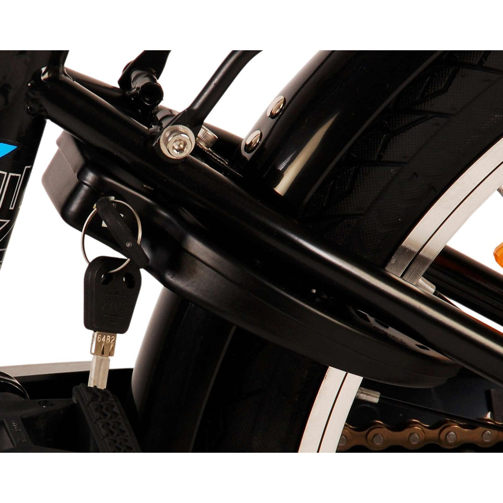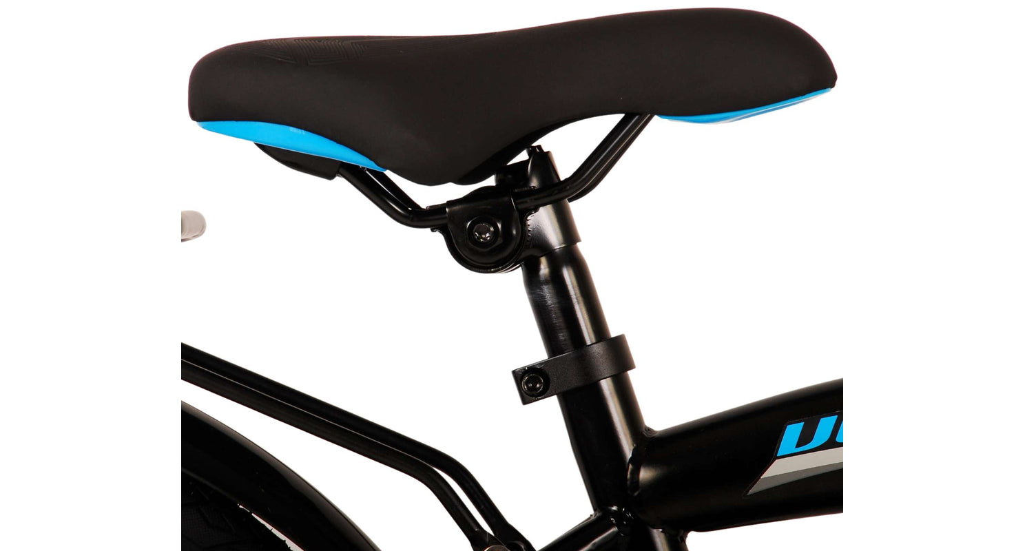 Veiligheid staat voorop! Daarom heeft deze gave fiets een handrem en terugtraprem en verlichting op batterij voor en achter. Daarnaast heeft de fiets een leuke bel en reflectoren in de wielen. Ook aan het comfort is gedacht. De mooie zwarte Volare fiets met blauwe accenten heeft een luxe zacht zadel en extra zachte handvaten, een handige achterdrager, en een stevig frame dat wel tegen een stootje kan. Verder heeft de fiets een standaard zodat hij netjes blijft staan en een sterk slot. Om zo lang mogelijk van de fiets te kunnen genieten heeft deze een extra lange zadelpen waardoor de fiets nóg langer met het kind meegroeit en ook het stuur is in hoogte verstelbaar.