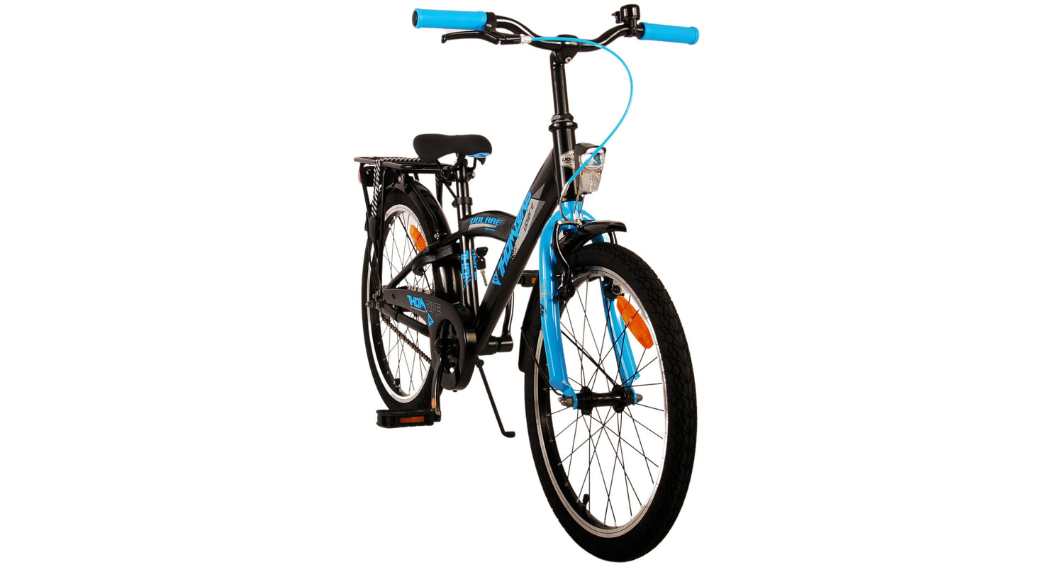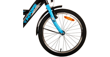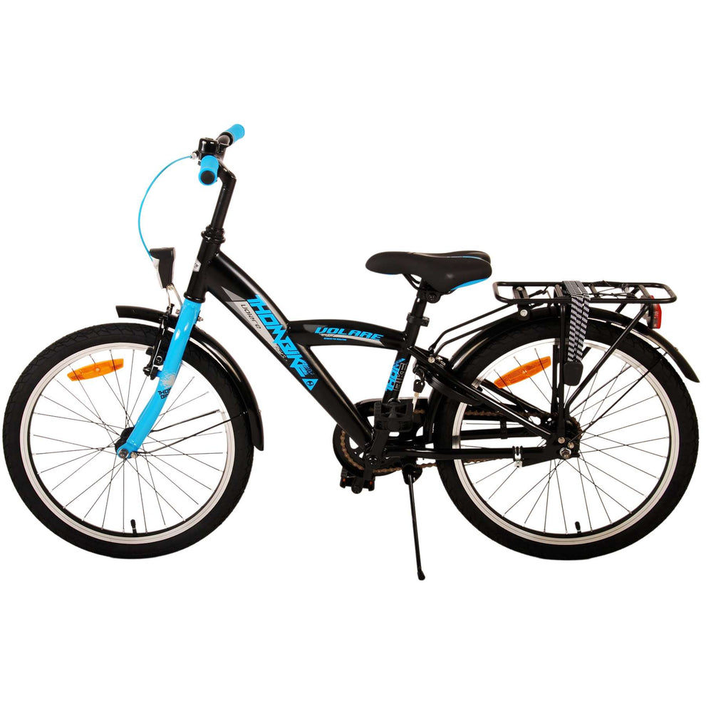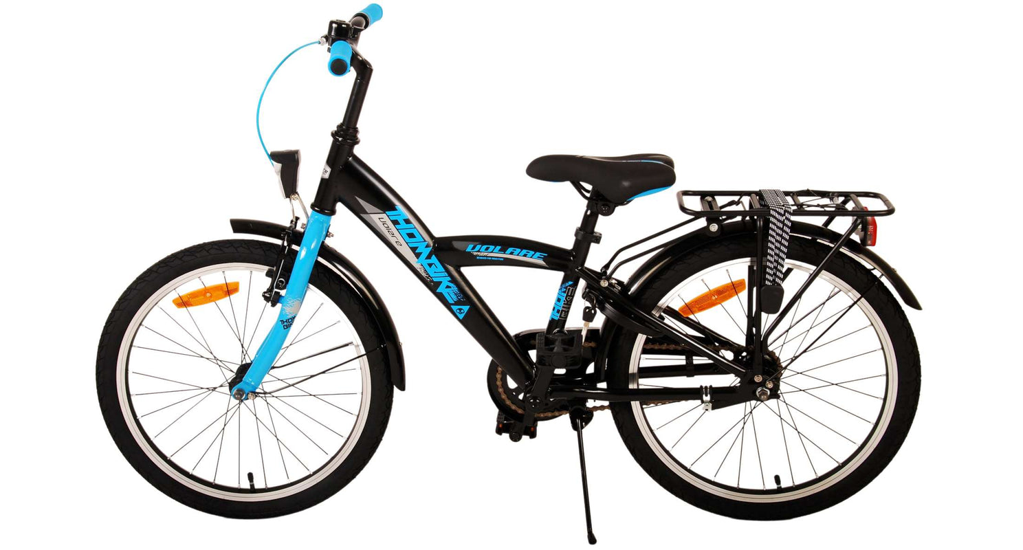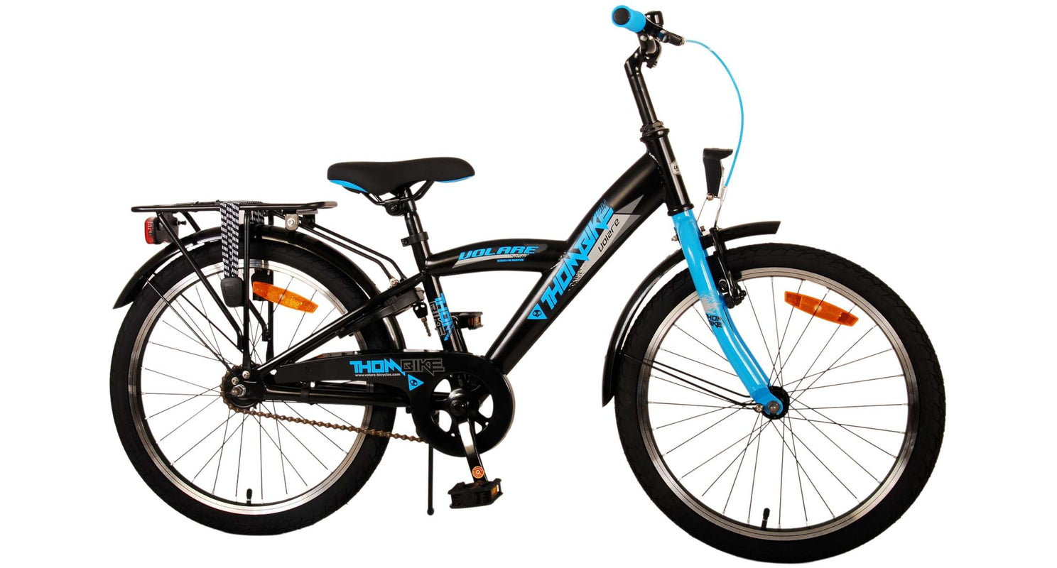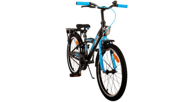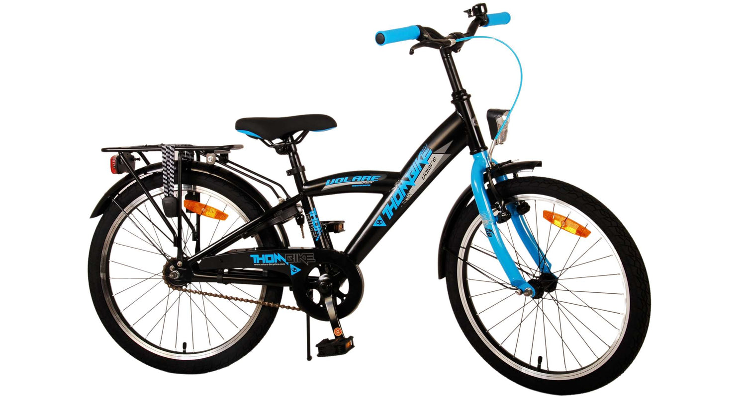 Veiligheid staat voorop! Daarom heeft deze gave fiets een handrem en terugtraprem en verlichting op batterij voor en achter. Daarnaast heeft de fiets een leuke bel en reflectoren in de wielen. Ook aan het comfort is gedacht. De mooie zwarte Volare fiets met blauwe accenten heeft een luxe zacht zadel en extra zachte handvaten, een handige achterdrager, en een stevig frame dat wel tegen een stootje kan. Verder heeft de fiets een standaard zodat hij netjes blijft staan en een sterk slot. Om zo lang mogelijk van de fiets te kunnen genieten heeft deze een extra lange zadelpen waardoor de fiets nóg langer met het kind meegroeit en ook het stuur is in hoogte verstelbaar.