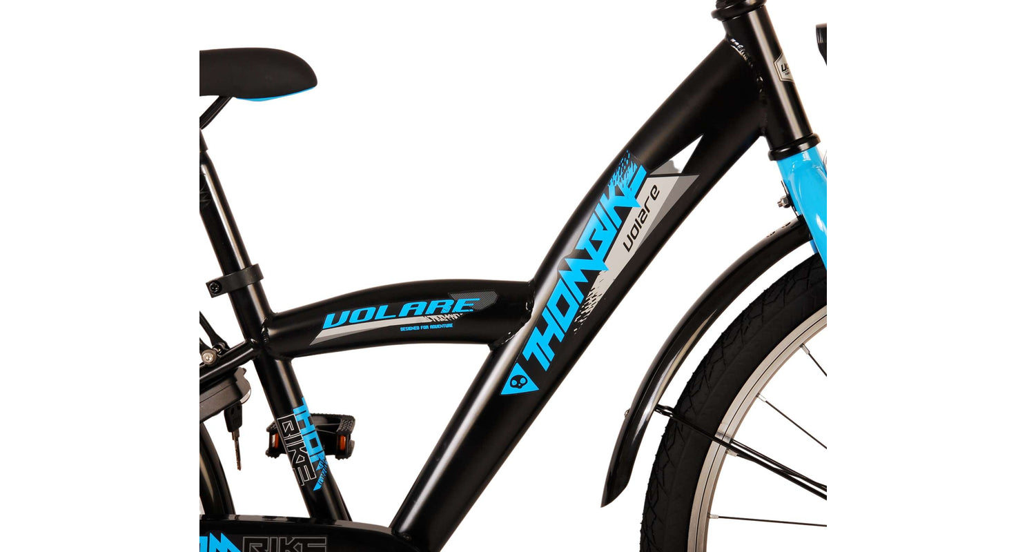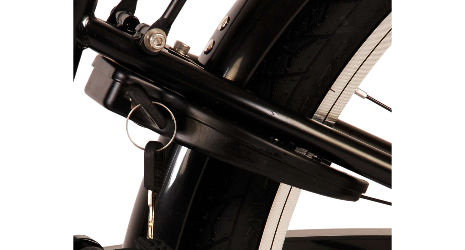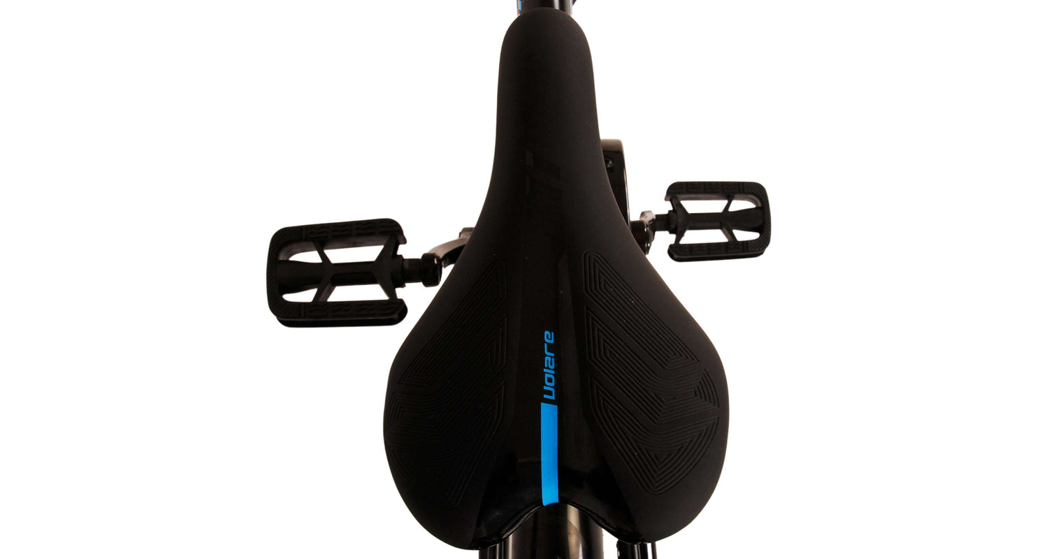 Veiligheid staat voorop! Daarom heeft deze gave fiets een handrem en terugtraprem en verlichting op batterij voor en achter. Daarnaast heeft de fiets een leuke bel en reflectoren in de wielen. Ook aan het comfort is gedacht. De mooie zwarte Volare fiets met blauwe accenten heeft een luxe zacht zadel en extra zachte handvaten, een handige achterdrager, en een stevig frame dat wel tegen een stootje kan. Verder heeft de fiets een standaard zodat hij netjes blijft staan en een sterk slot. Om zo lang mogelijk van de fiets te kunnen genieten heeft deze een extra lange zadelpen waardoor de fiets nóg langer met het kind meegroeit en ook het stuur is in hoogte verstelbaar.