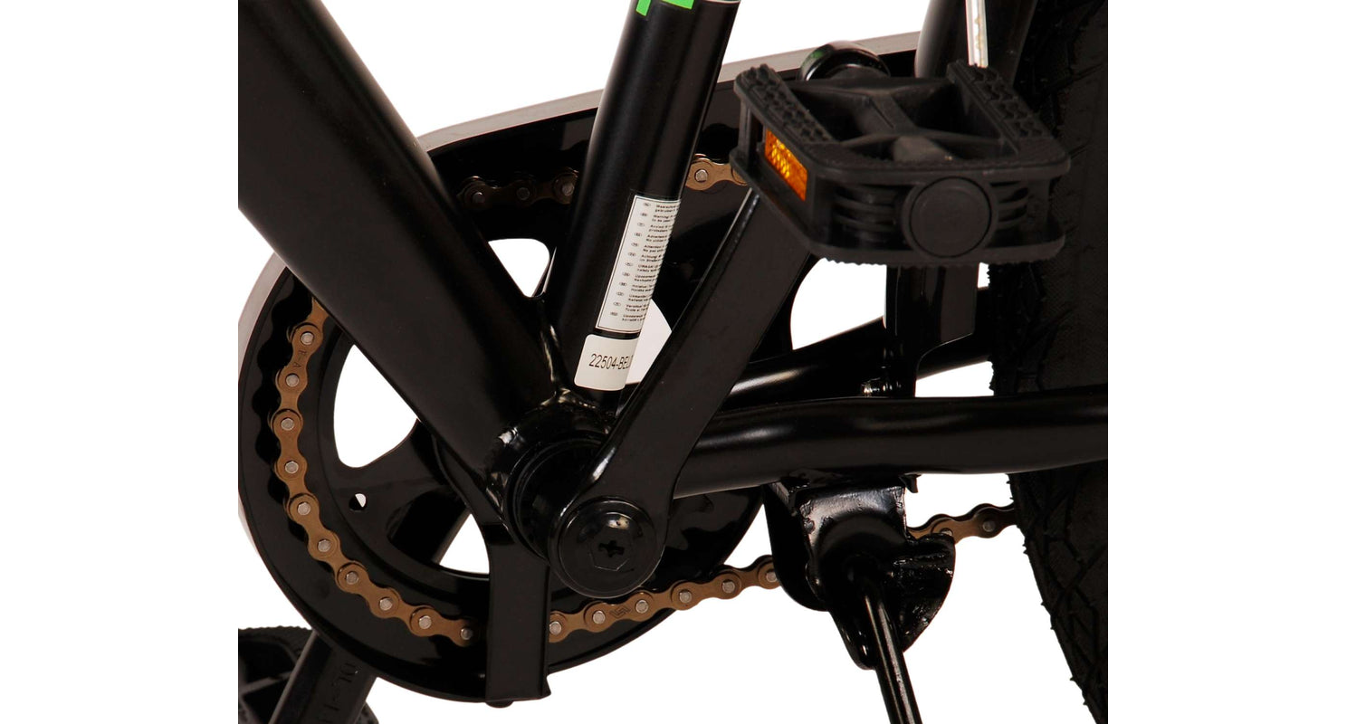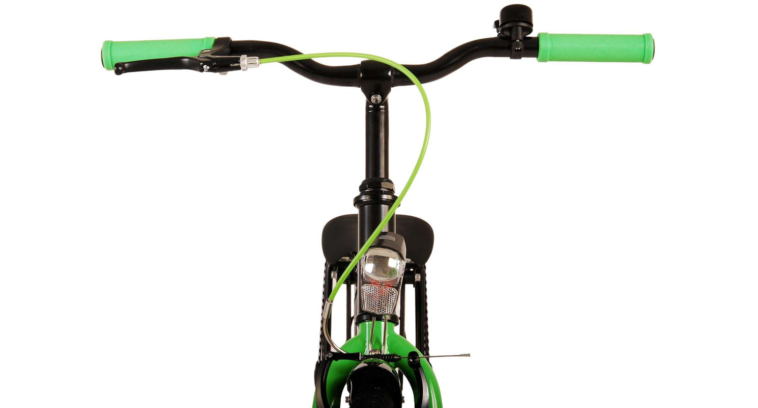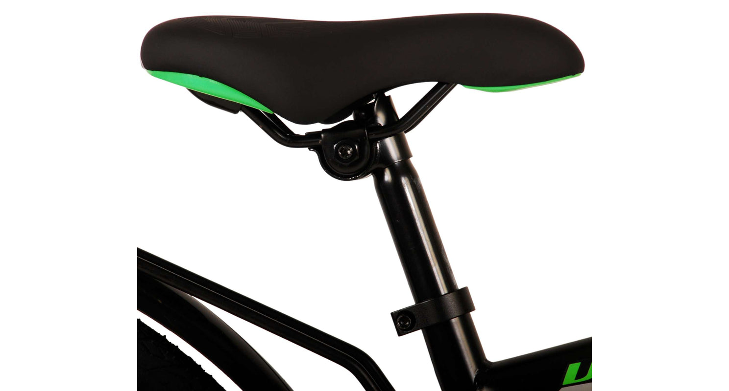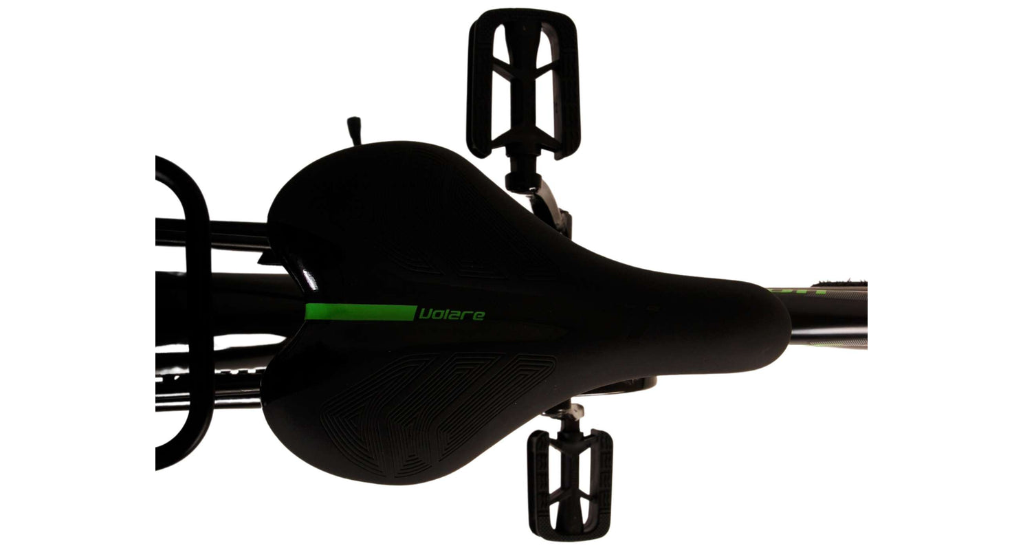 Veiligheid staat voorop! Daarom heeft deze gave fiets een handrem en terugtraprem en verlichting op batterij voor en achter. Daarnaast heeft de fiets een leuke bel en reflectoren in de wielen. Ook aan het comfort is gedacht. De mooie zwarte Volare fiets met groene accenten heeft een luxe zacht zadel en extra zachte handvaten, een handige achterdrager, en een stevig frame dat wel tegen een stootje kan. Verder heeft de fiets een standaard zodat hij netjes blijft staan en een sterk slot. Om zo lang mogelijk van de fiets te kunnen genieten heeft deze een extra lange zadelpen waardoor de fiets nóg langer met het kind meegroeit en ook het stuur is in hoogte verstelbaar.