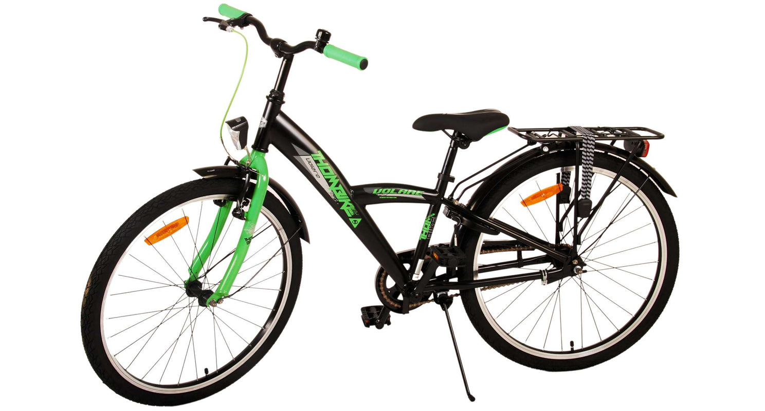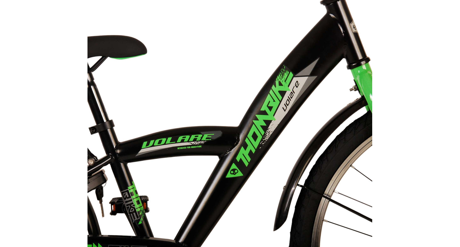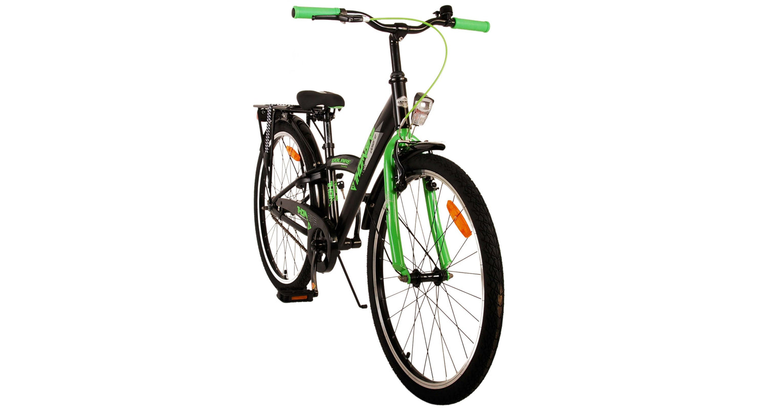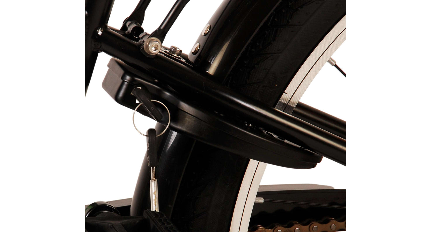 Veiligheid staat voorop! Daarom heeft deze gave fiets een handrem en terugtraprem en verlichting op batterij voor en achter. Daarnaast heeft de fiets een leuke bel en reflectoren in de wielen. Ook aan het comfort is gedacht. De mooie zwarte Volare fiets met groene accenten heeft een luxe zacht zadel en extra zachte handvaten, een handige achterdrager, en een stevig frame dat wel tegen een stootje kan. Verder heeft de fiets een standaard zodat hij netjes blijft staan en een sterk slot. Om zo lang mogelijk van de fiets te kunnen genieten heeft deze een extra lange zadelpen waardoor de fiets nóg langer met het kind meegroeit en ook het stuur is in hoogte verstelbaar.