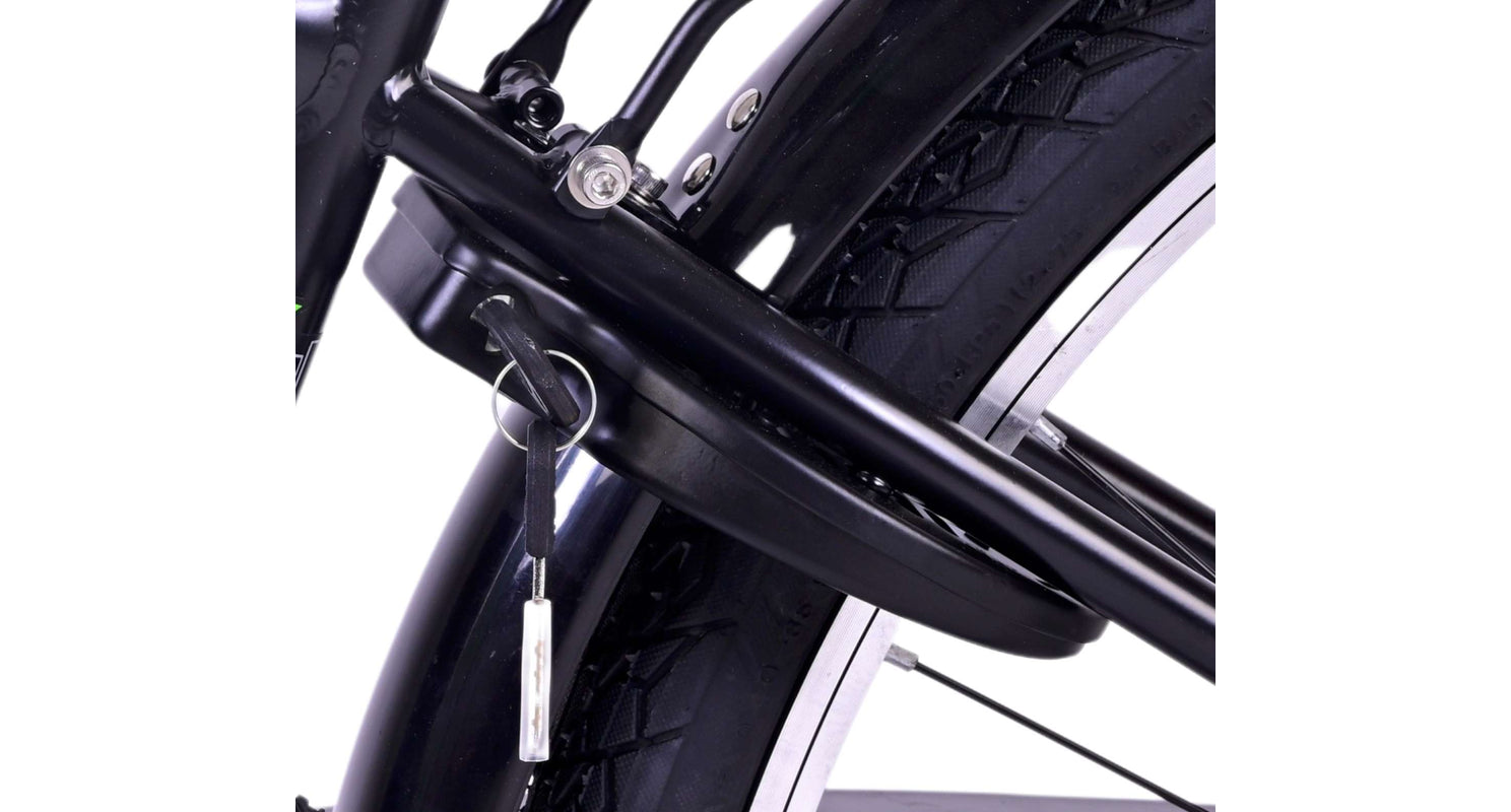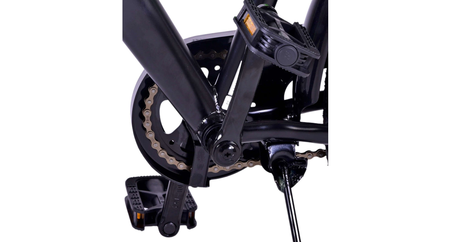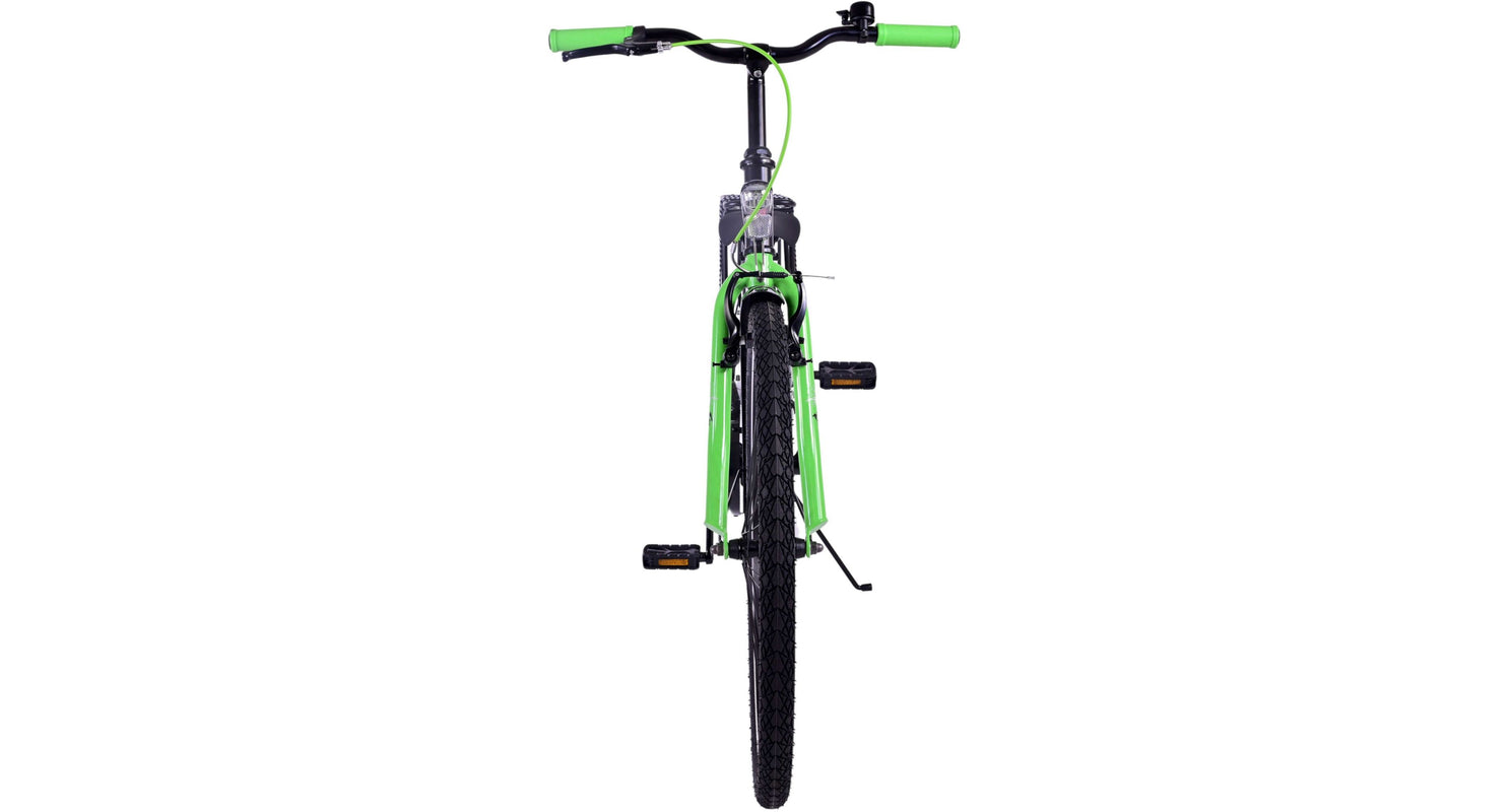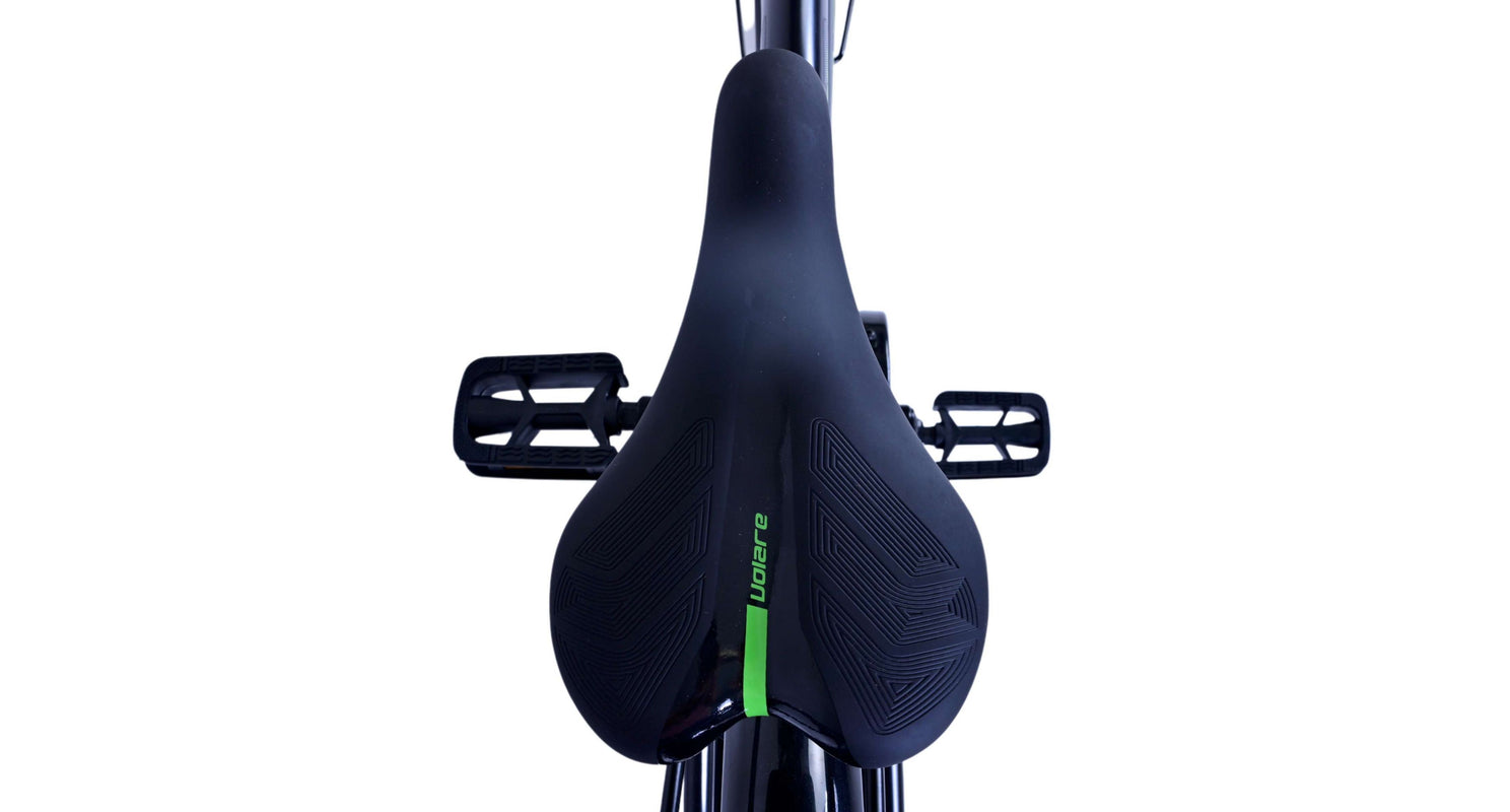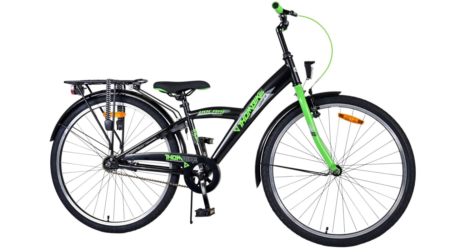 Veiligheid staat voorop! Daarom heeft deze gave fiets een handrem en terugtraprem en verlichting op batterij voor en achter. Daarnaast heeft de fiets een leuke bel en reflectoren in de wielen. Ook aan het comfort is gedacht. De mooie zwarte Volare fiets met groene accenten heeft een luxe zacht zadel en extra zachte handvaten, een handige achterdrager, en een stevig frame dat wel tegen een stootje kan. Verder heeft de fiets een standaard zodat hij netjes blijft staan en een sterk slot. Om zo lang mogelijk van de fiets te kunnen genieten heeft deze een extra lange zadelpen waardoor de fiets nóg langer met het kind meegroeit en ook het stuur is in hoogte verstelbaar.