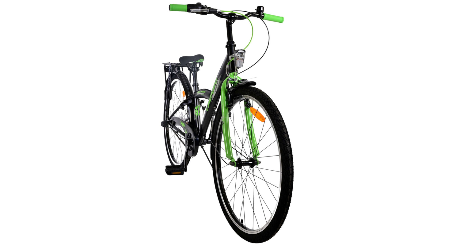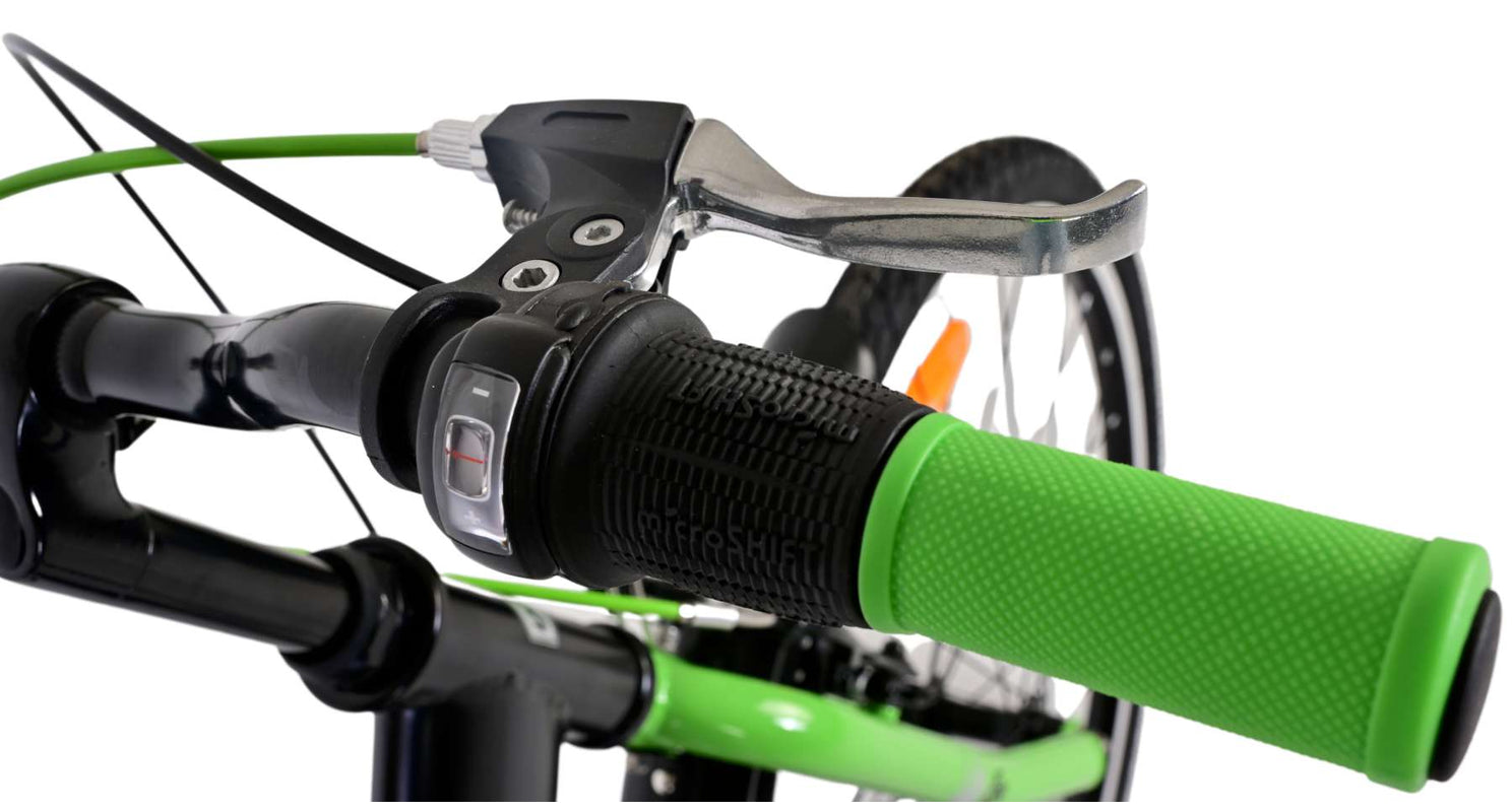 Veiligheid staat voorop! Daarom heeft deze gave fiets een handrem en terugtraprem en verlichting op batterij voor en achter. Daarnaast heeft de fiets een leuke bel en reflectoren in de wielen. Ook aan het comfort is gedacht. De mooie zwarte Volare fiets met groene accenten heeft een luxe zacht zadel, 3 versnellingen van Shimano, extra zachte handvaten, een handige achterdrager, en een stevig frame dat wel tegen een stootje kan. Verder heeft de fiets een standaard zodat hij netjes blijft staan en een sterk slot. Om zo lang mogelijk van de fiets te kunnen genieten heeft deze een extra lange zadelpen waardoor de fiets nóg langer met het kind meegroeit en ook het stuur is in hoogte verstelbaar.