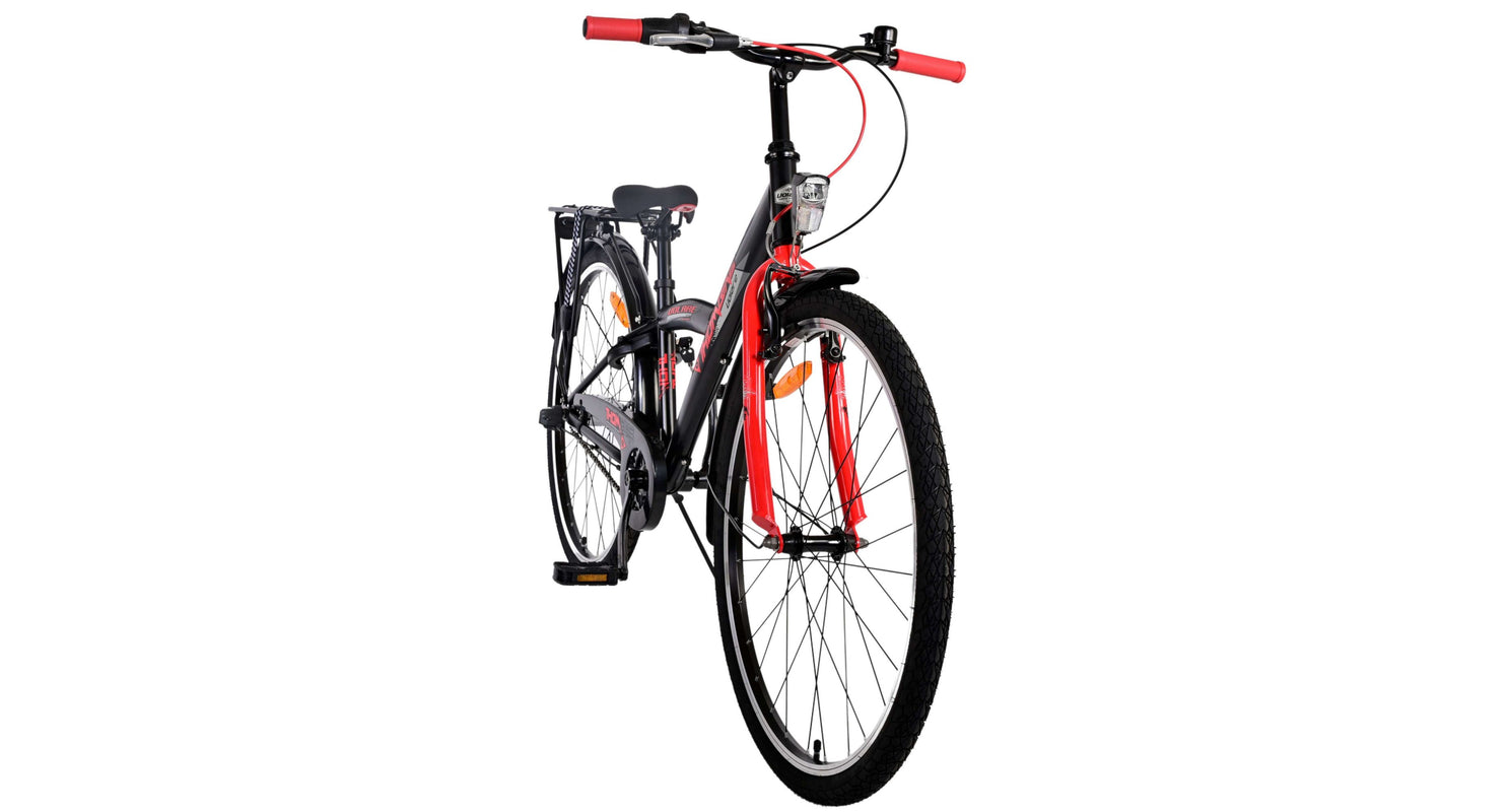 Veiligheid staat voorop! Daarom heeft deze gave fiets een handrem en terugtraprem en verlichting op batterij voor en achter. Daarnaast heeft de fiets een leuke bel en reflectoren in de wielen. Ook aan het comfort is gedacht. De mooie zwarte Volare fiets met rode accenten heeft een luxe zacht zadel, 3 versnellingen van Shimano, extra zachte handvaten, een handige achterdrager, en een stevig frame dat wel tegen een stootje kan. Verder heeft de fiets een standaard zodat hij netjes blijft staan en een sterk slot. Om zo lang mogelijk van de fiets te kunnen genieten heeft deze een extra lange zadelpen waardoor de fiets nóg langer met het kind meegroeit en ook het stuur is in hoogte verstelbaar.
