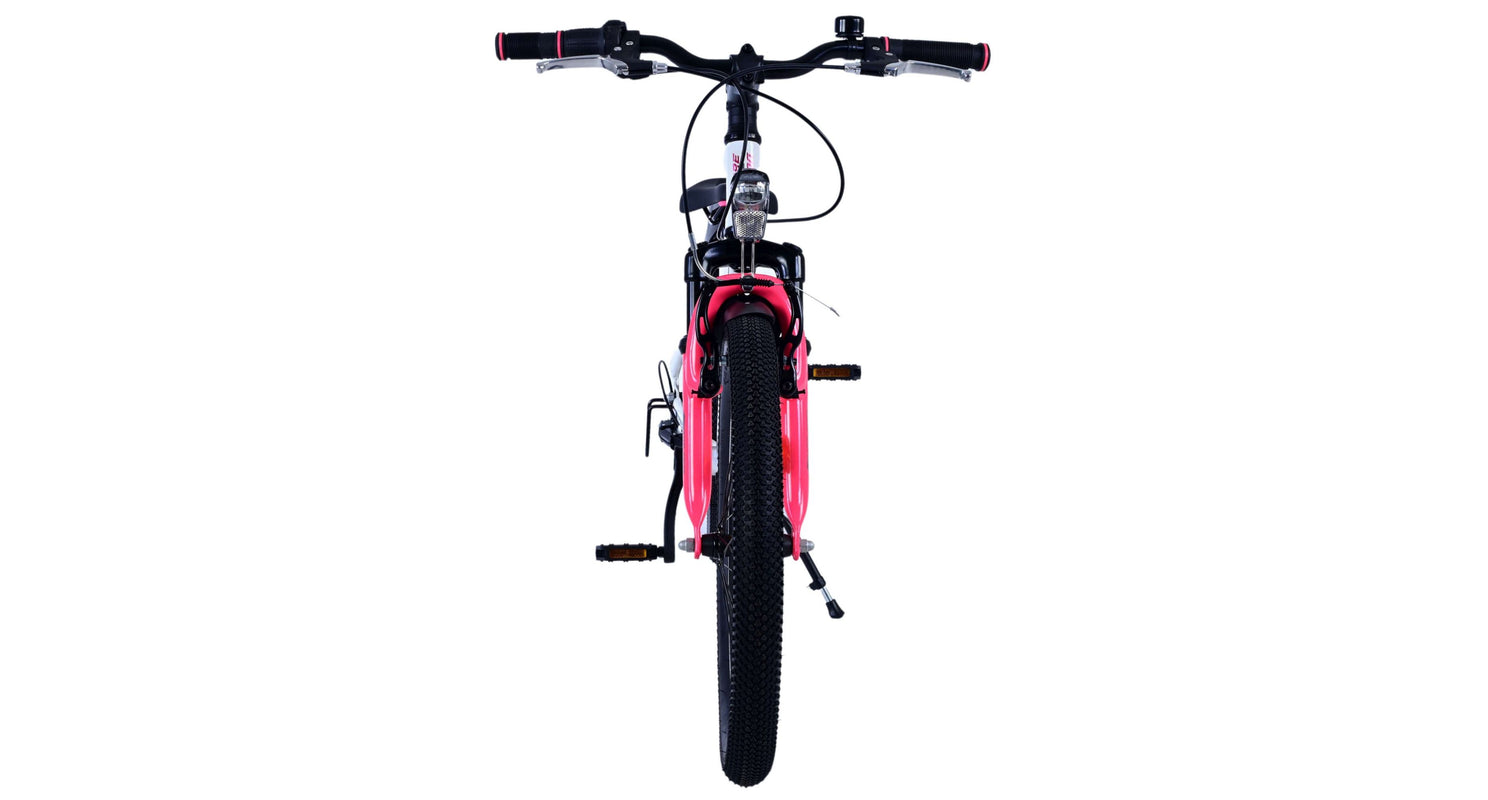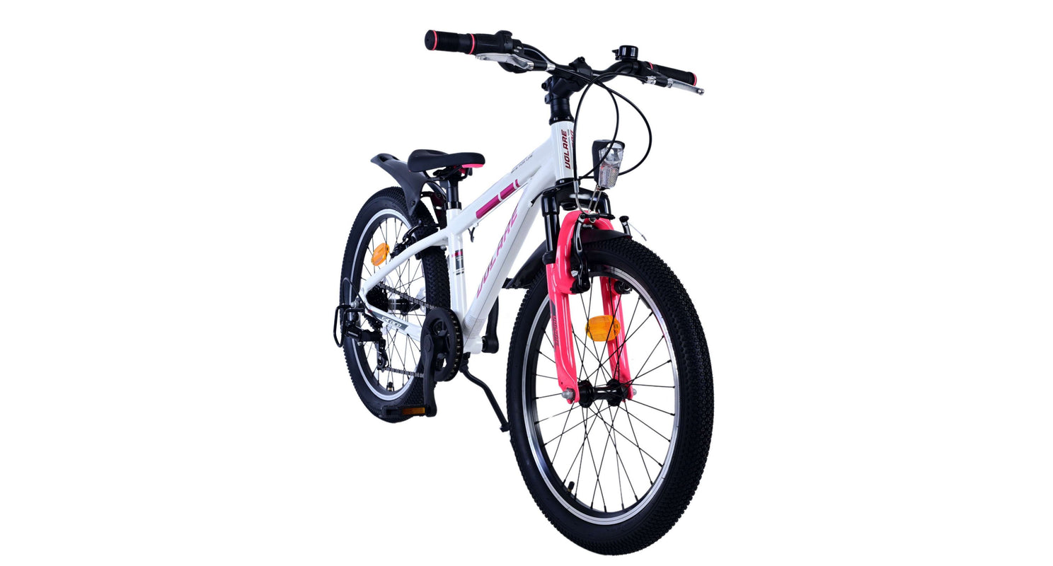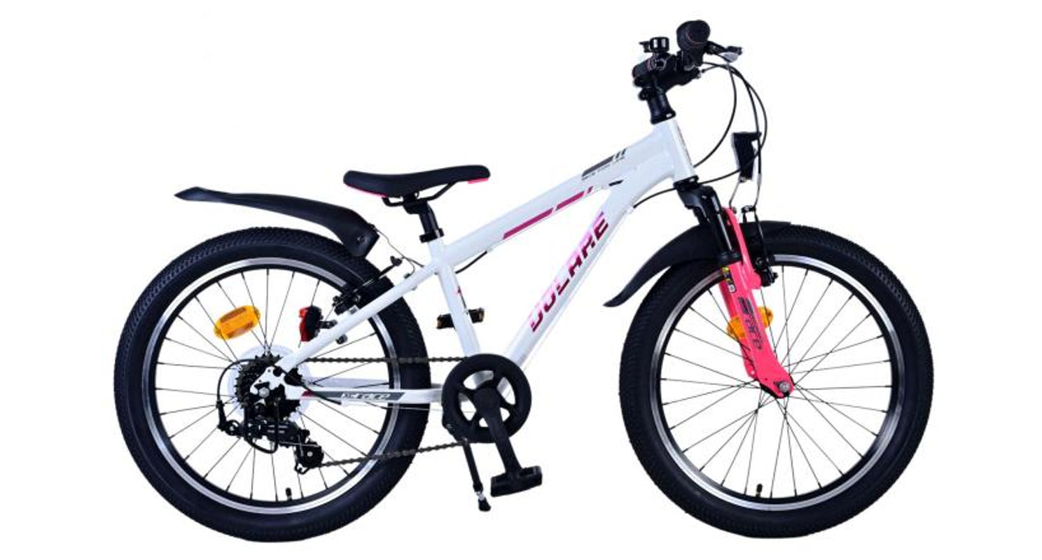 Veiligheid staat voorop! Daarom heeft deze gave fiets 2 handremmen en geen terugtraprem! Daarnaast heeft de fiets 7 versnellingen van shimano met revoshifters, reflectoren in de wielen, reflectoren voor en achter op de fiets, een bel, verlichting voor en achter op verlichting. De gekantelde stuurpen zorgt voor een beter zicht op de weg, maar is daardoor niet in hoogte verstelbaar. Ook aan het comfort is gedacht. De mooie witte Volare fiets met roze accenten heeft een comfortabel zacht zadel, een standaard zodat je fiets netjes blijft staan, en stoere extra brede banden. Om zo lang mogelijk van de fiets te kunnen genieten heeft de fiets een extra lange zadelpen waardoor de fiets nóg langer meegroeit.