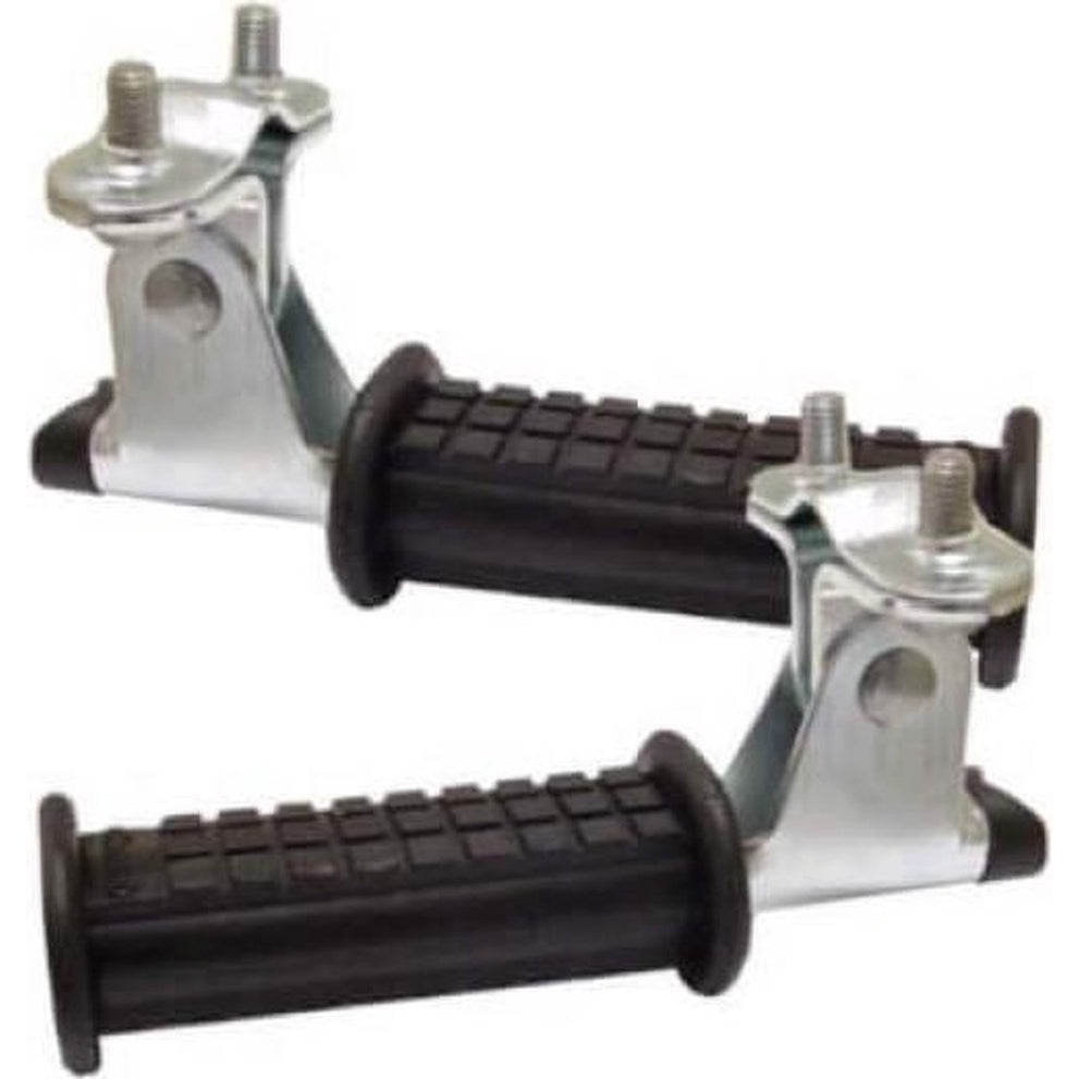 - Inklapbare voetsteunen: Duurzaam en slijtvast, gemaakt van geanodiseerd staal. Met rubberen grip voor extra veiligheid en opklapbaar wanneer niet in gebruik.